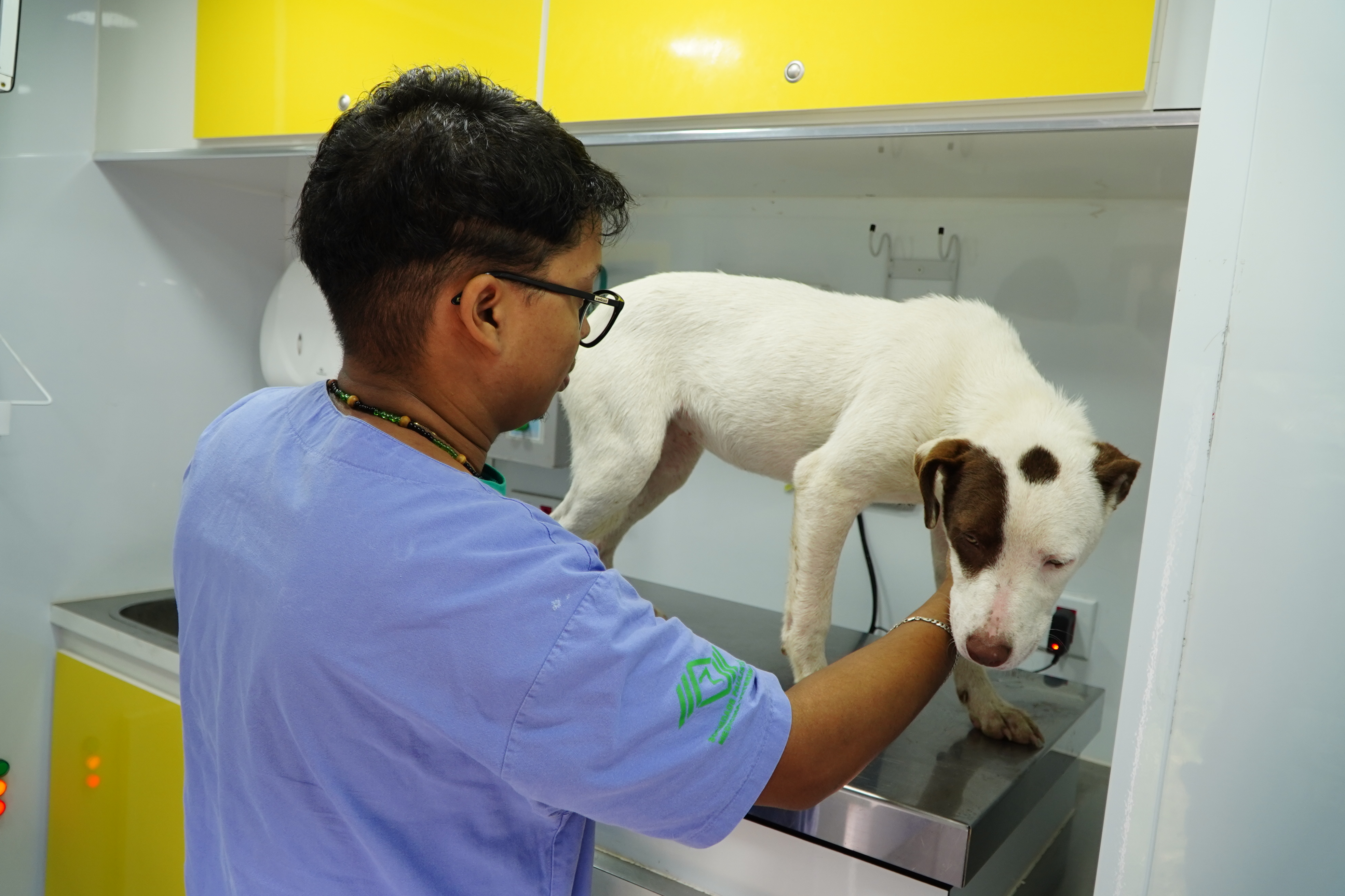 A unidade do PATA Móvel possui um centro cirúrgico veterinário completo, equipado com quatro mesas cirúrgicas, equipamentos de anestesia inalatória, ventilação mecânica e uma equipe especializada. Seu corpo médico é formado por veterinários especialistas em cirurgia e anestesia, além de auxiliares veterinários capacitados para prestar atendimento aos pacientes, não importa a distância, sempre com excelência.