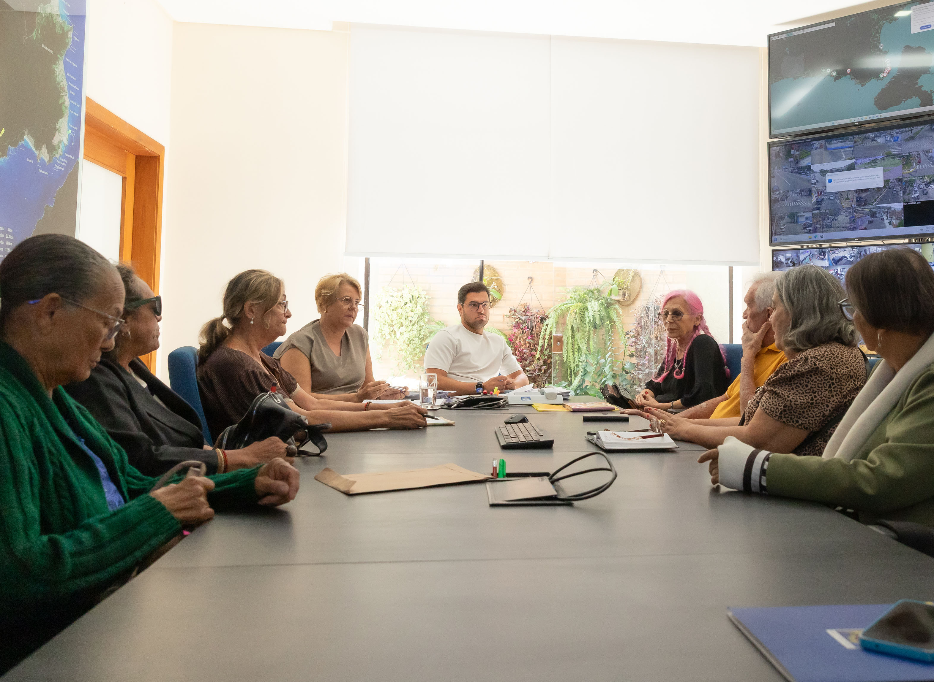 Também participaram da reunião a secretária da Sepedi, Juliana Coelho; o chefe de Secretaria da Sepedi, Felipe Cardim; e a advogada e presidente do Conselho Municipal do Idoso (Comiss), Márcia Ione de Mello Souza.