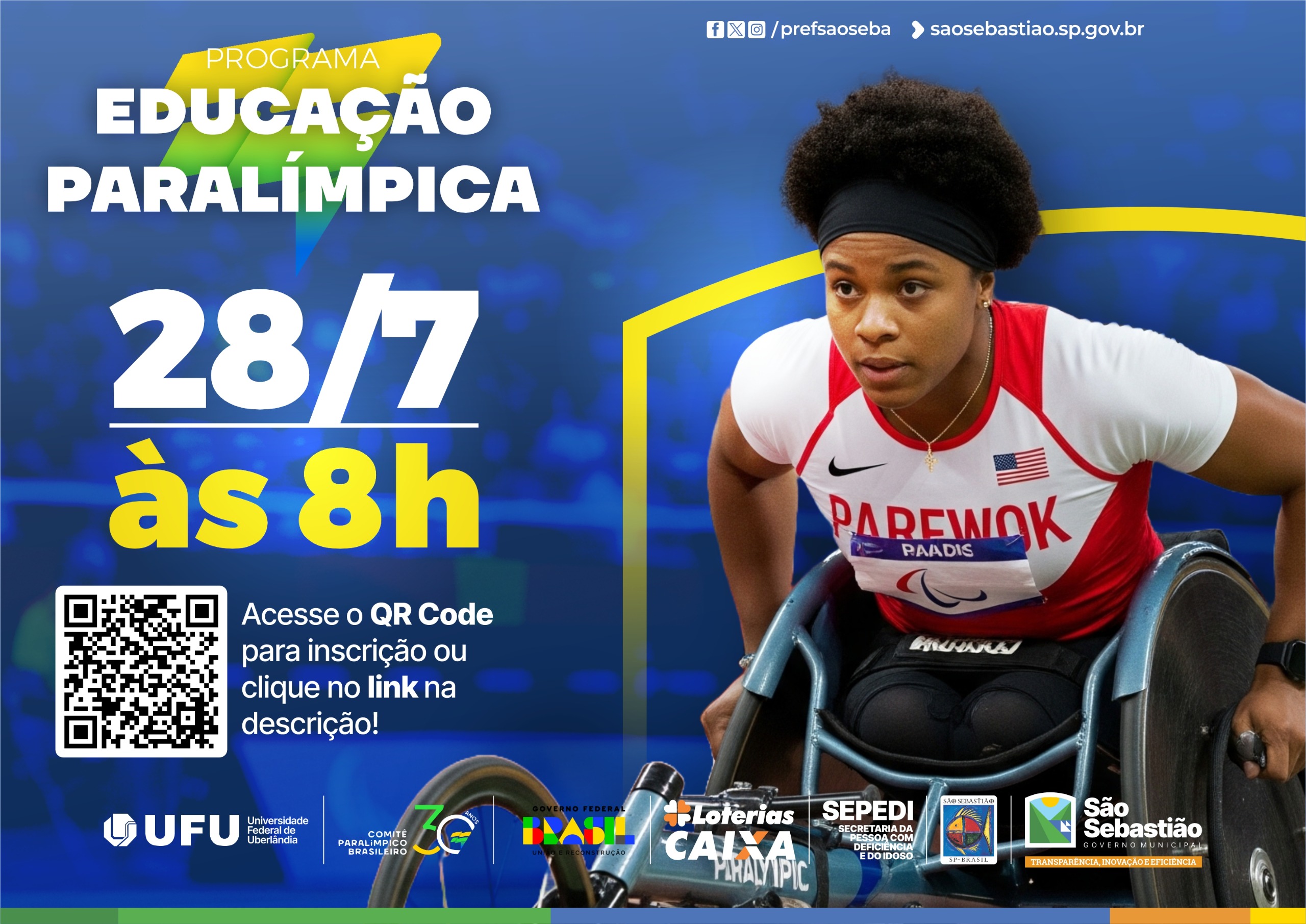 A Prefeitura de São Sebastião, por meio das secretarias da Pessoa com Deficiência e do Idoso (Sepedi) e da Educação (Seduc), está com inscrições abertas para profissionais das redes municipais e particular, em especial professores de educação física, interessados em participar do seminário e curso presencial sobre modalidades paralímpicas.