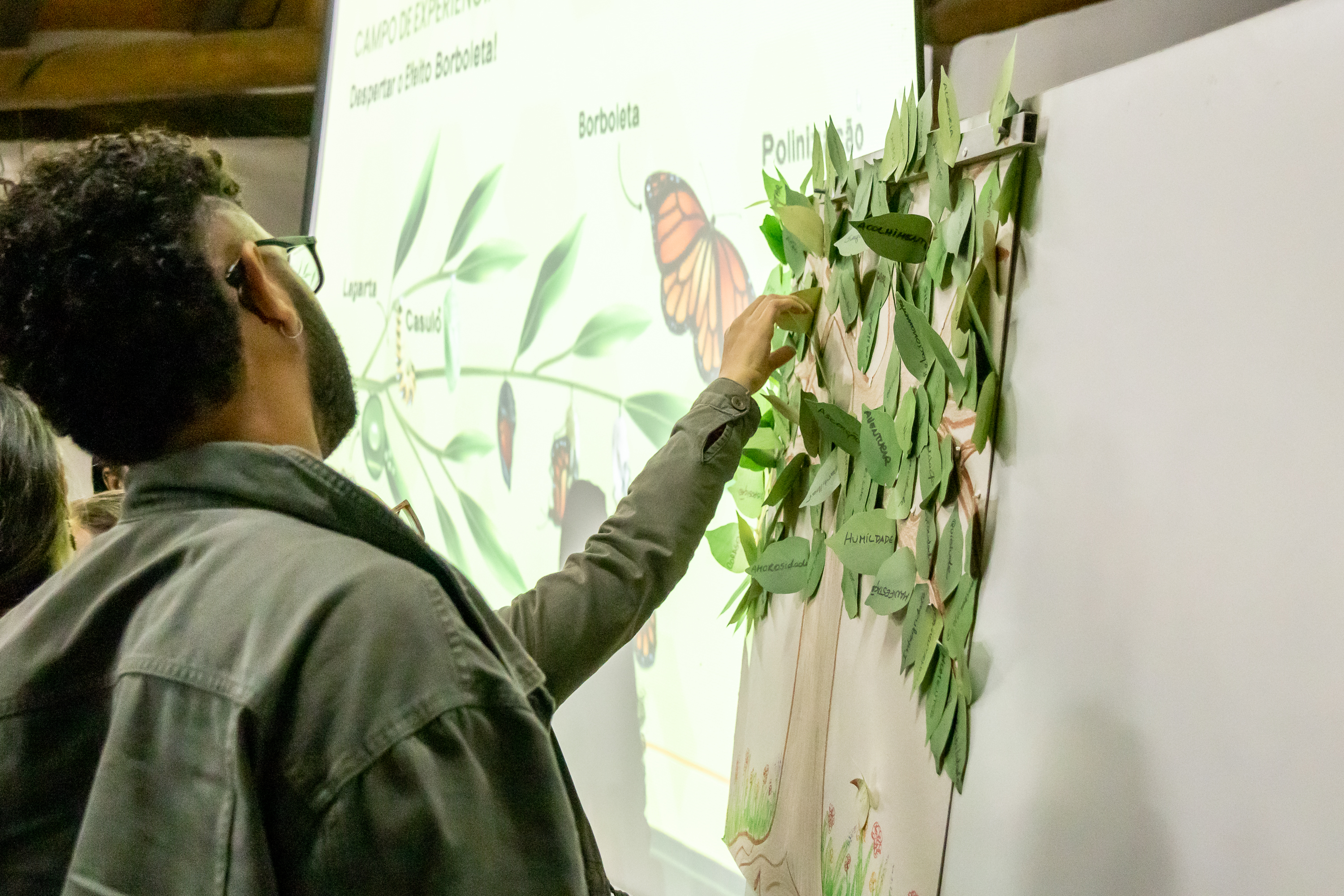 Durante o encontro, os participantes refletiram sobre os pilares que diferenciam a alfabetização ecológica da tradicional, com destaque para o tripé criança–natureza–educação. Também foram discutidos temas como o Efeito Borboleta e sua aplicação simbólica no cotidiano escolar, além da importância dos polinizadores e a transversalidade desse tema no currículo.