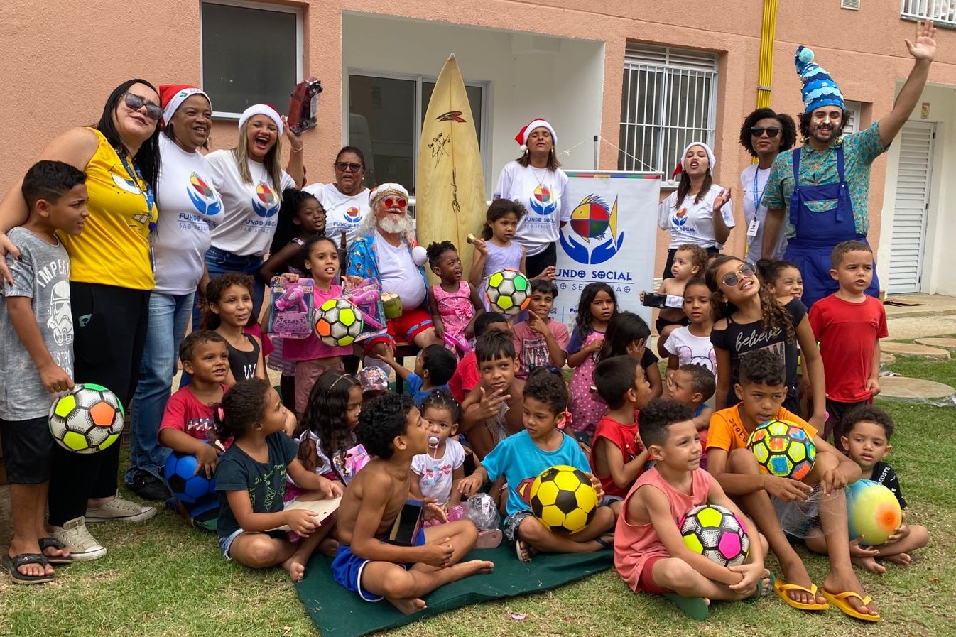 Os presentes foram entregues pelo Papai Noel, duendes ajudantes e equipe do Fundo Social.