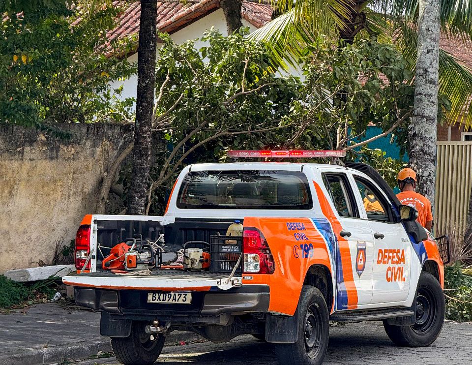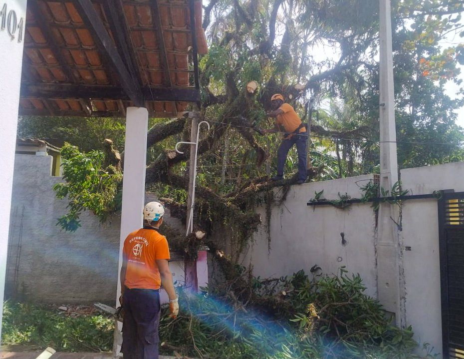 As equipes estão em campo fazendo o cortes dessas árvores e liberação das vias com apoio da Secretaria de Serviços Públicos