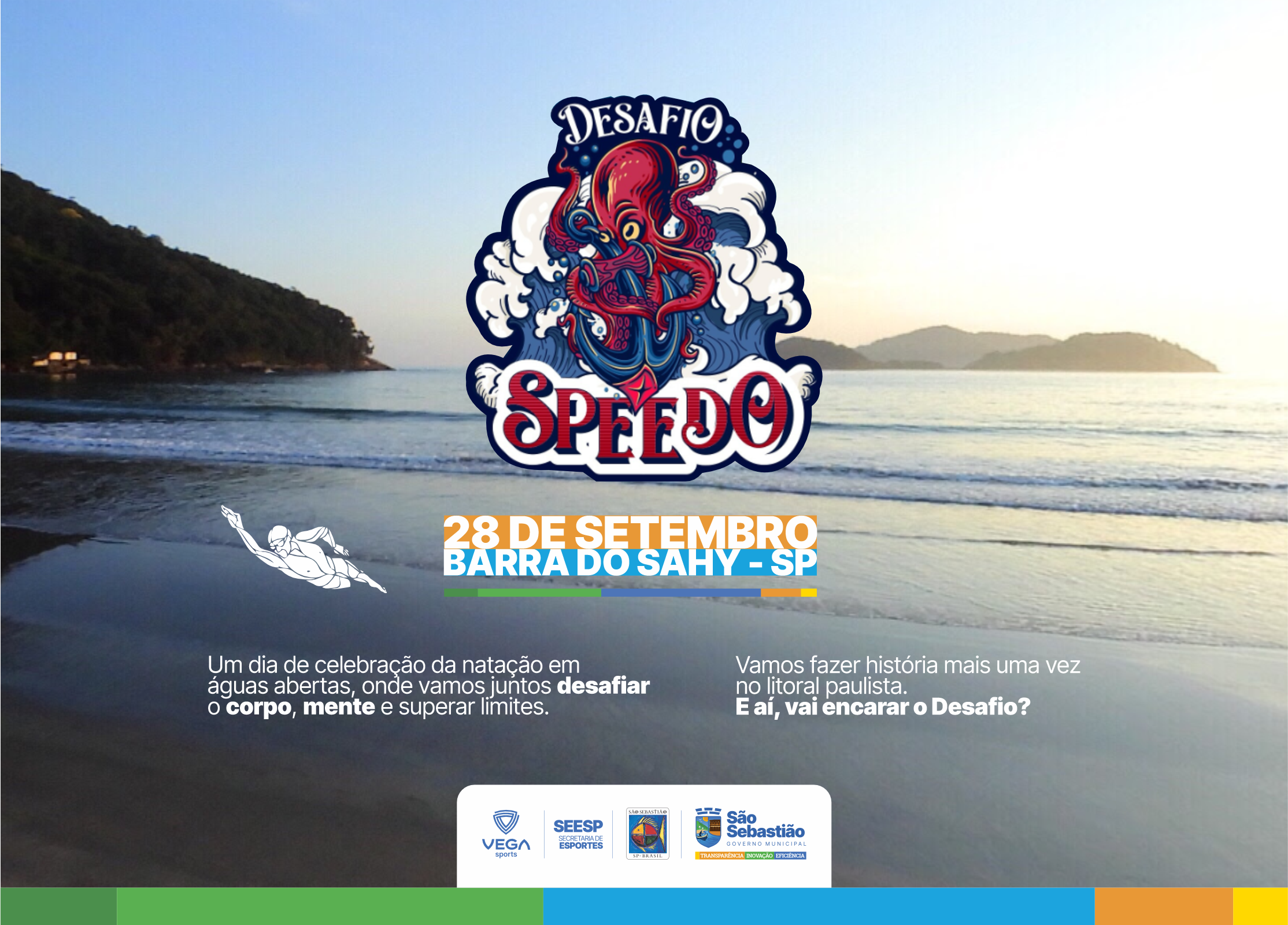 Com uma megaestrutura e organização da empresa de assessoria esportiva, Vega Sports, o Desafio Speedo conta com o apoio da Prefeitura de São Sebastião, por meio da Secretaria de Esportes (Seesp). Esta é a segunda vez que o desafio tem São Sebastião como sede e a expectativa é de que mais de 2 mil atletas participem da competição.