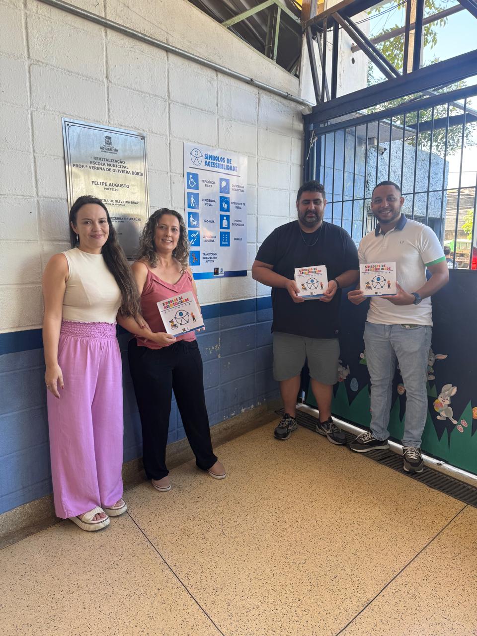 A Prefeitura de São Sebastião, por meio das Secretarias da Pessoa com Deficiência e do Idoso (Sepedi) e da Educação (Seduc), iniciou a colocação de placas informativas com símbolos de acessibilidade que representam as deficiências. A iniciativa vai contemplar 25 unidades escolares, da Costa Norte à Costa Sul do município e faz parte da Semana de Luta pela Educação Inclusiva, comemorado em 15 de abril.