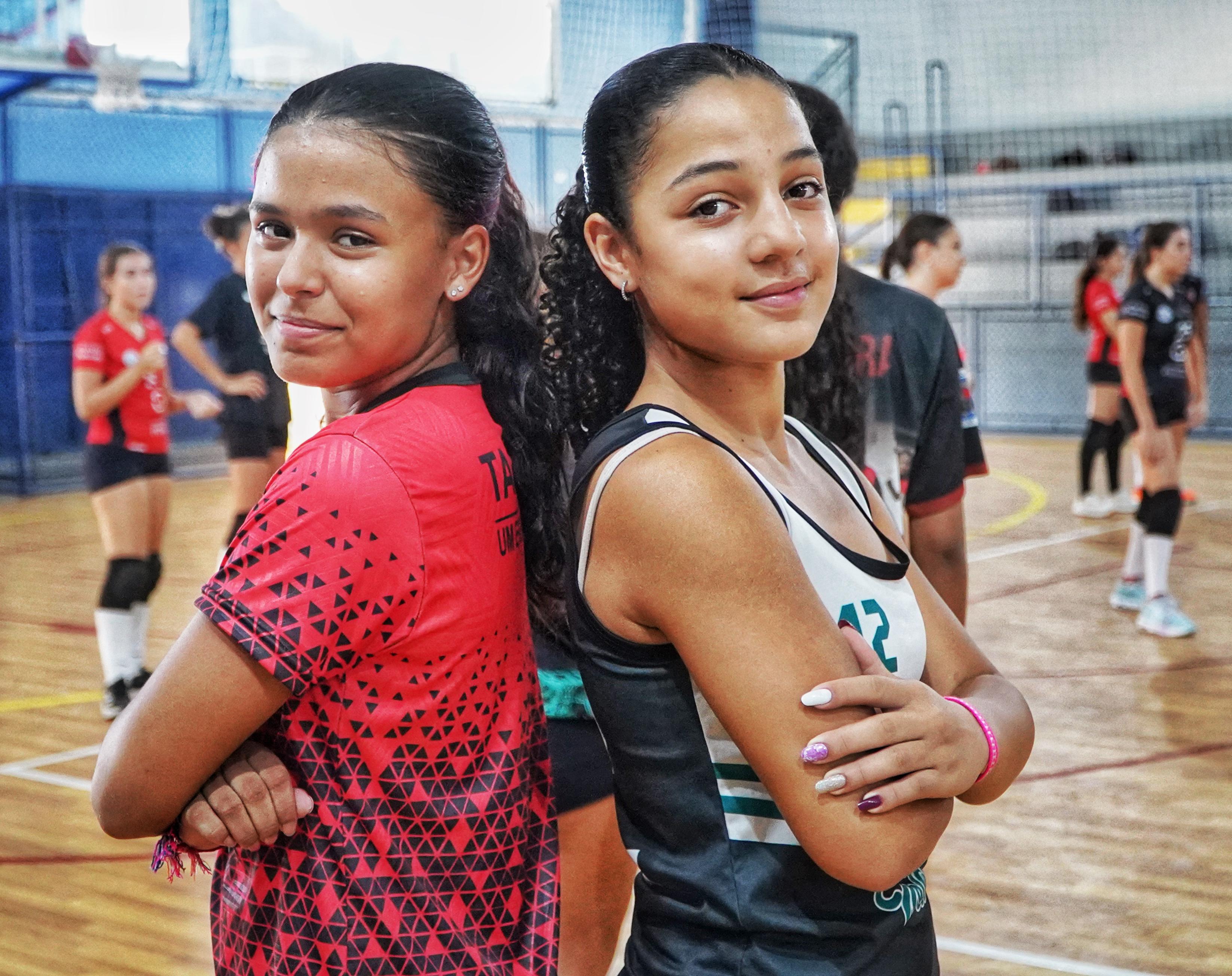 #PraTodosVerem: imagens de atletas da equipe feminina de voleibol Sub-15 de São Sebastião, que disputa a Copa Amizade de Voleibol de São Sebastião 2025, no sábado (29/5). Fim da descrição.