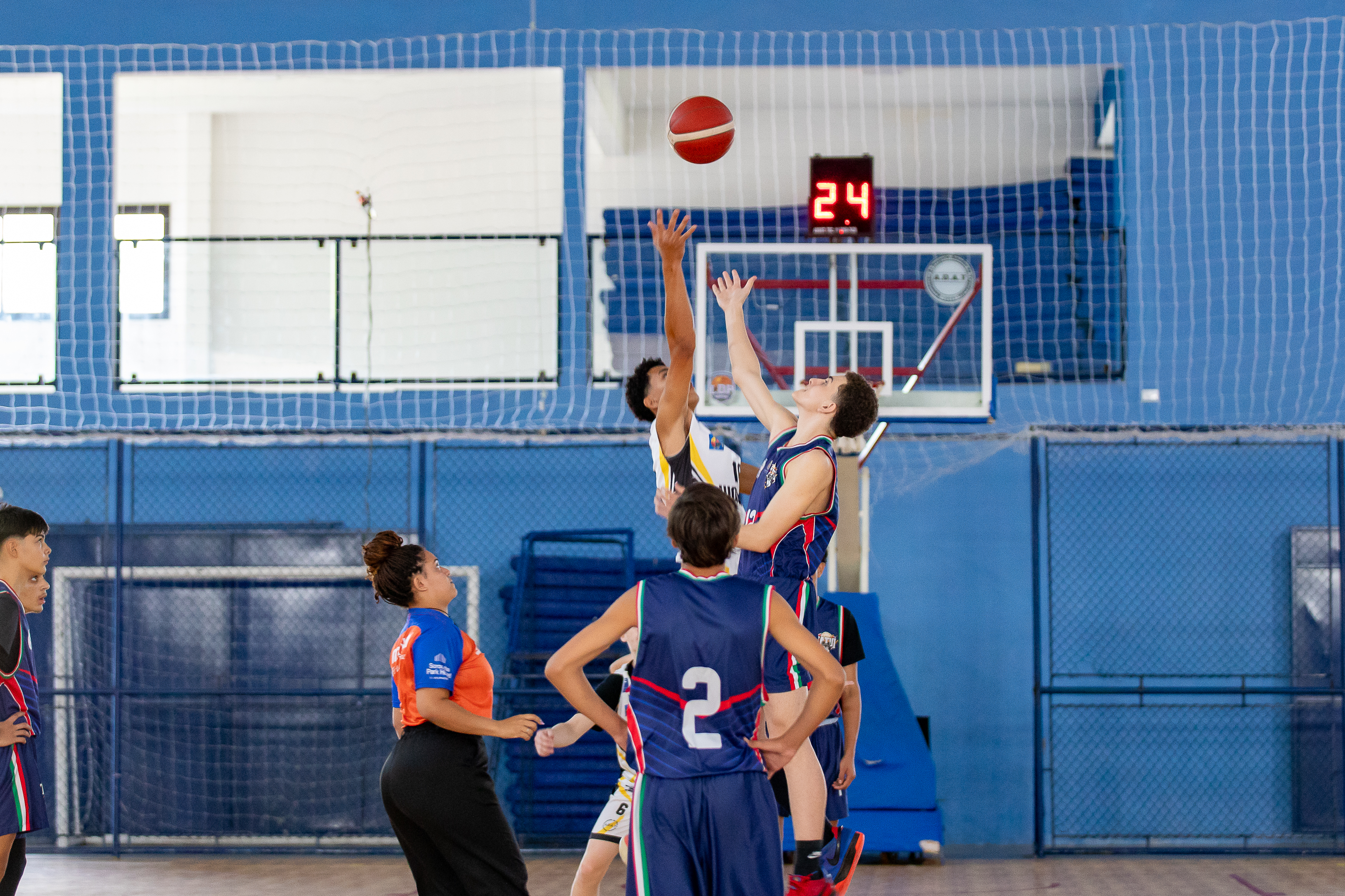 #PraTodosVerem: Atletas das equipes Wolves de São Sebastião protagonizam momentos intensos durante partidas de basquete realizadas em ginásio coberto, com destaque para o arremesso de lance livre feminino, jogadas de drible e disputa de bola no início da partida masculina, sempre acompanhadas por árbitros atentos. Fim da descrição.