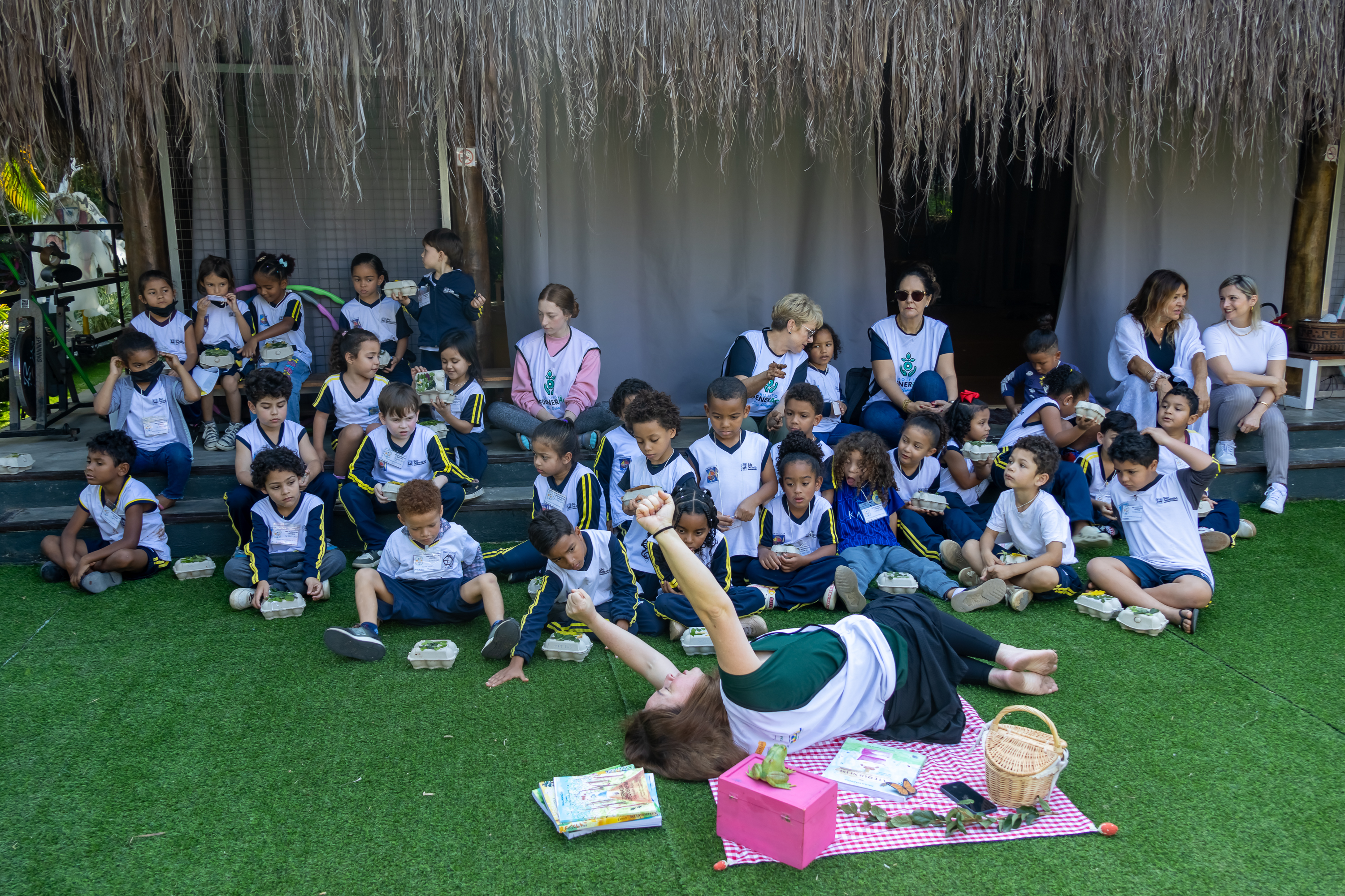 Os alunos da EMEI Gilmar Furtado de Oliveira “Alegria das Crianças”, em Boiçucanga, viveram uma experiência encantadora no Kaaysá Art Residency na última quinta-feira (21/8), como parte do Projeto RegenerAção & Jornada Atequenfim.