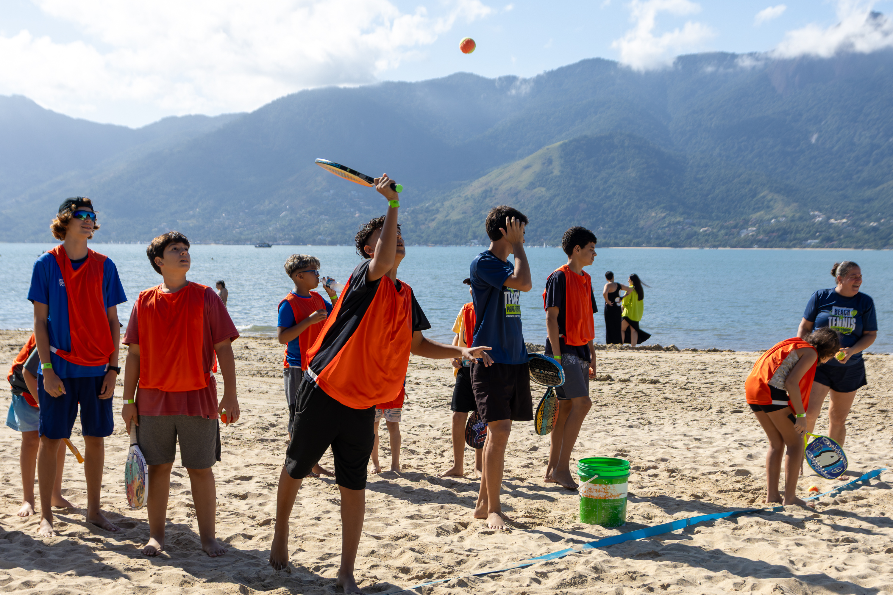 A programação começou com a acolhida dos alunos, distribuição de pulseiras de identificação, lanches e organização das equipes. Em seguida, os participantes foram divididos por cores de coletes e direcionados às quadras, onde professores especializados conduziram oficinas práticas sobre beach tennis, ensinando noções básicas como movimentação, saque e trabalho em equipe.