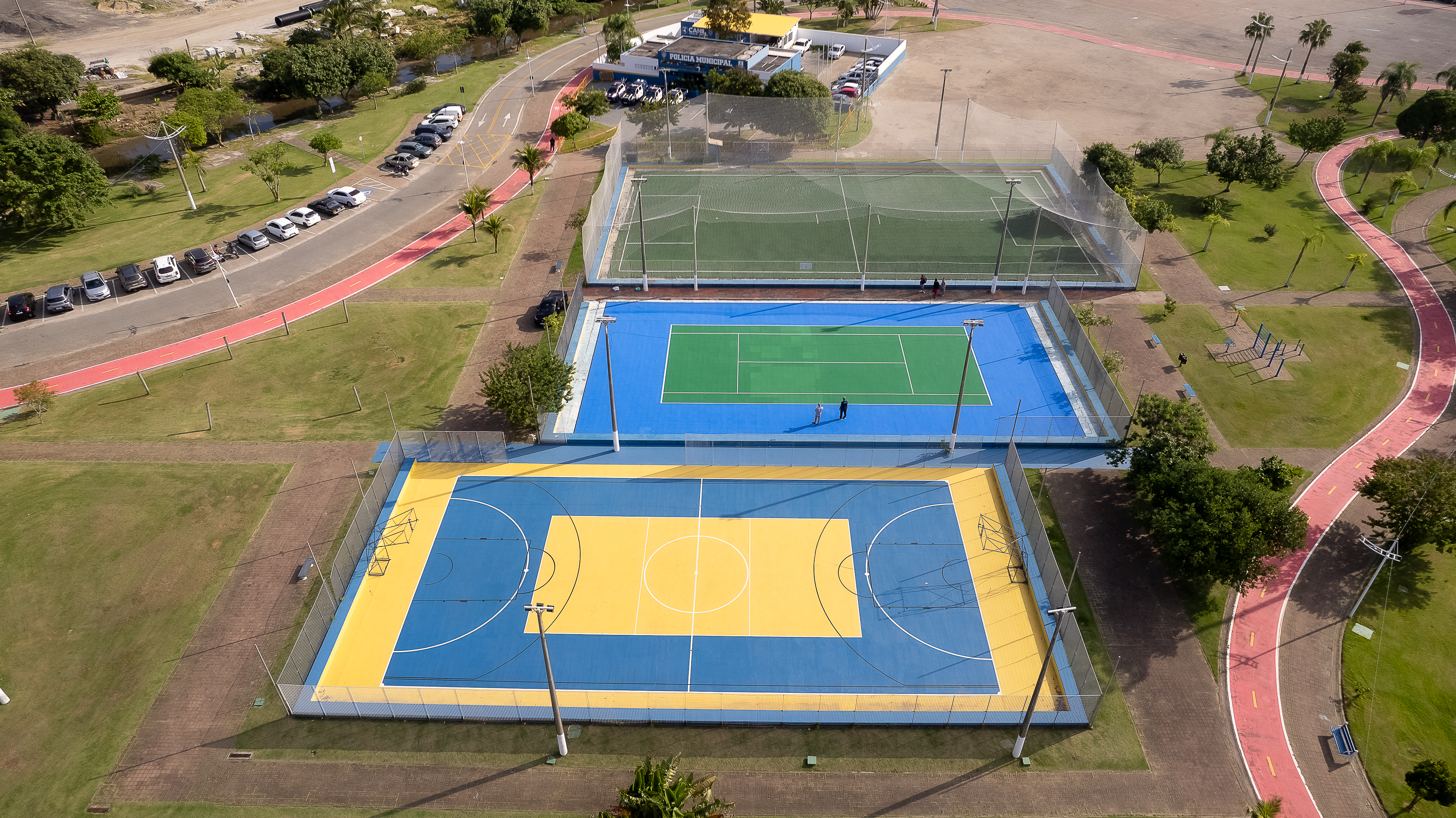 Já a quadra poliesportiva, ganhou a instalação das tabelas de acrílico para prática de basquetebol, aros, traves e redes novas. Na quadra de futebol society, ocorreu a troca da grama sintética, pintura, adequação de todas as grades em torno do campo, substituição das traves e redes. A equipe da Seesp também realizou a troca dos refletores em todo o Complexo Esportivo.