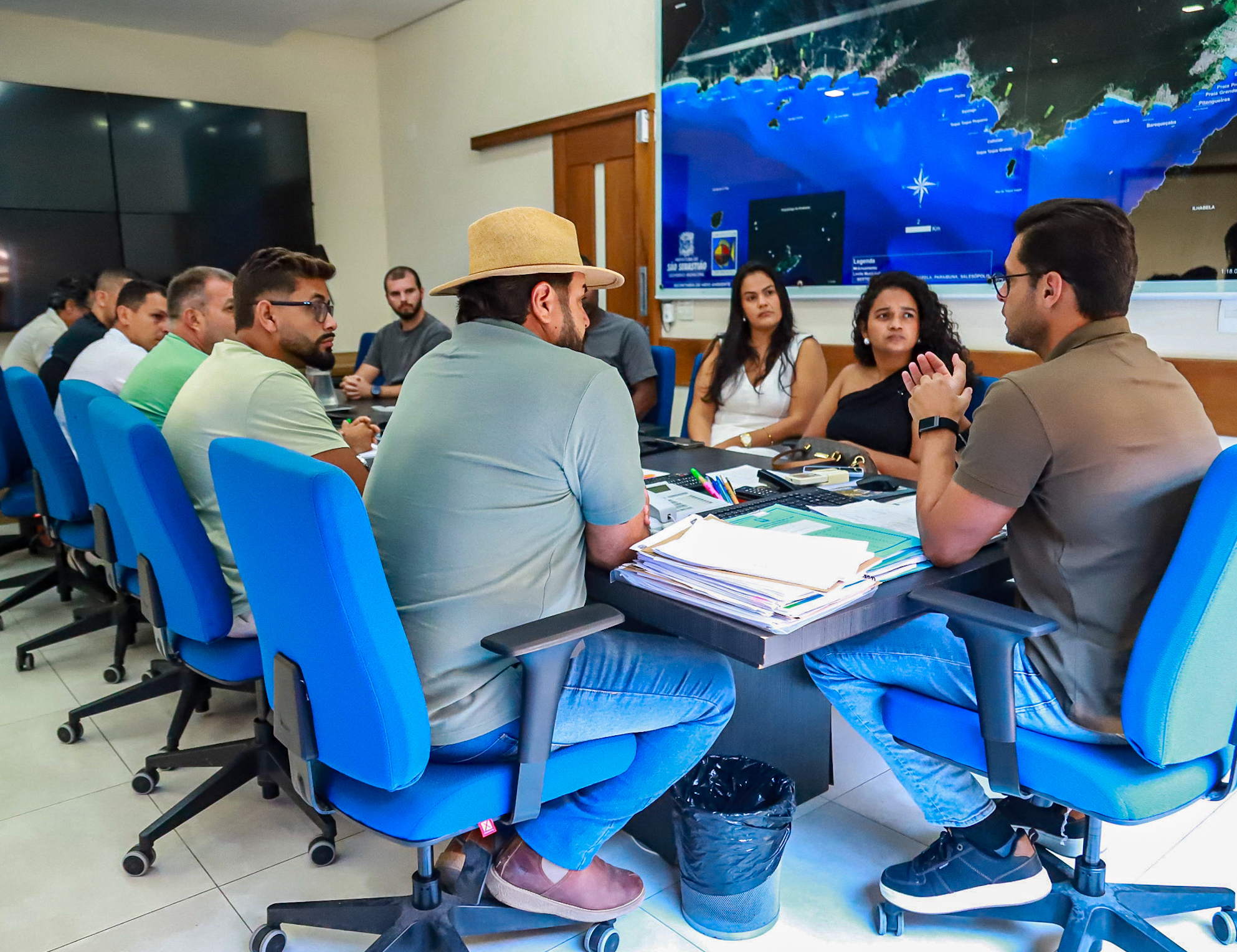 O prefeito de São Sebastião, Reinaldinho Moreira, se reuniu com representantes da comunidade da Barreirinha, na quarta-feira (25/03), no gabinete, acompanhado dos secretários José Mauro Botelho, da Secretaria de Habitação e Regularização Fundiária (Sehab); e Leandro Fernandes, da Secretaria de Urbanismo (Seurb), para dialogar sobre o andamento das ações de regularização fundiária e as melhorias previstas para o núcleo.