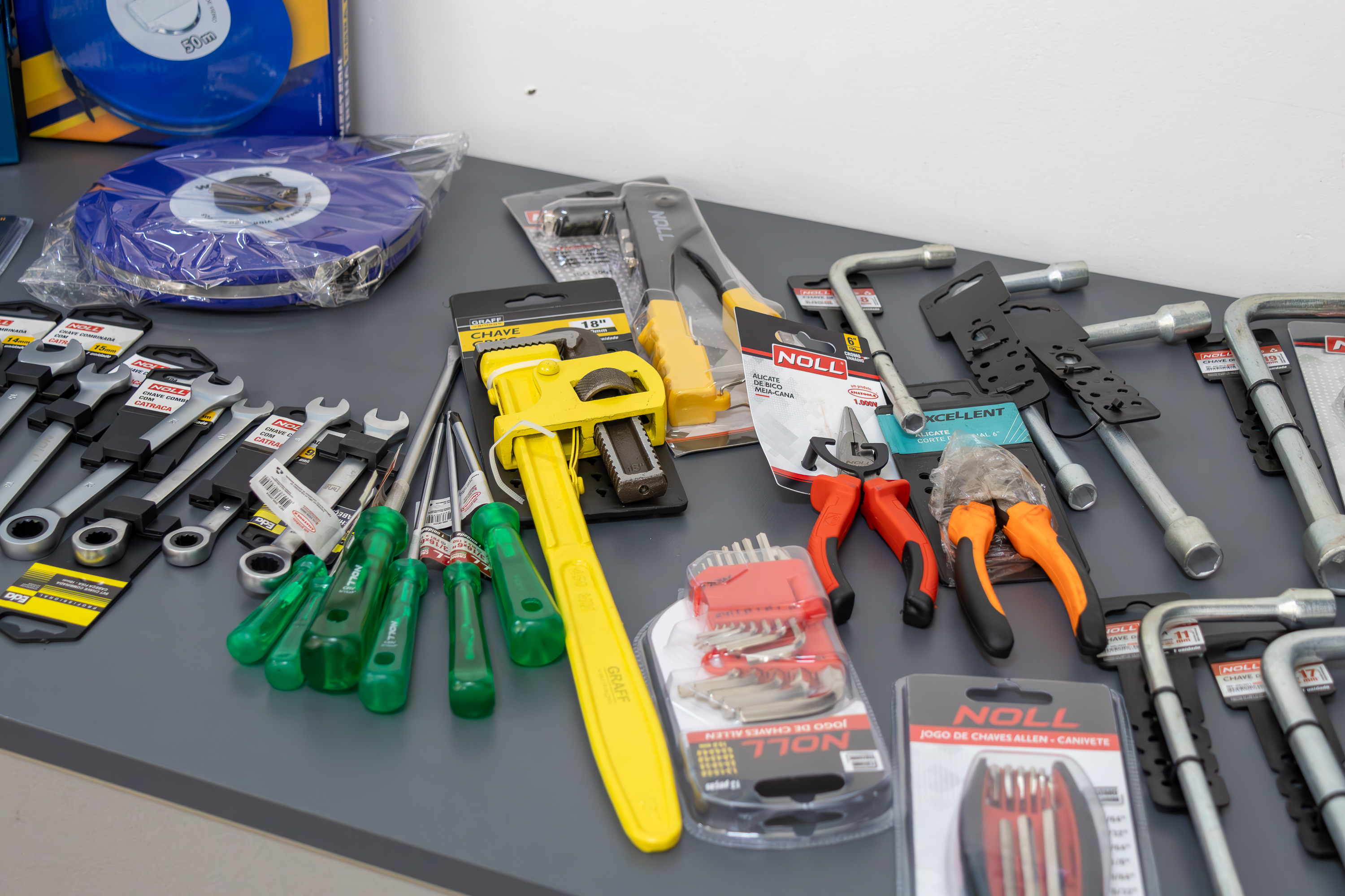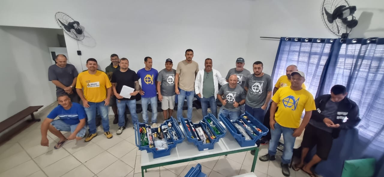 Cada kit é composto por instrumentos essenciais para as atividades diárias, como trena, martelo, nível de mão, alicate, chave de fenda, entre outros itens fundamentais para a execução dos serviços com eficiência e qualidade.