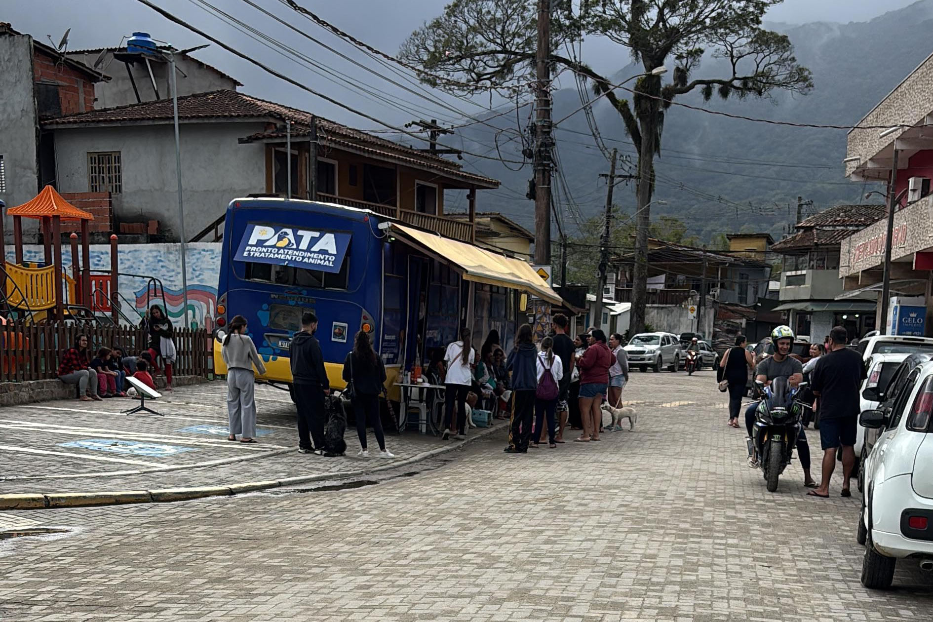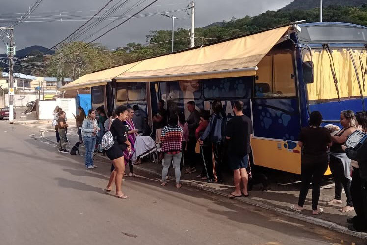 #PraTodosVerem: imagens mostram o atendimento veterinário gratuito realizado pelo Pata Móvel, um ônibus adaptado que percorre os bairros de São Sebastião oferecendo cuidados com carinho e muito amor aos pets da população. Agenda de setembro foi divulgada nesta segunda-feira. Fim da descrição.