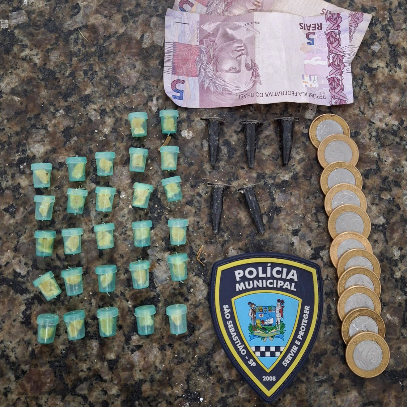 A Polícia Municipal de São Sebastião realizou, na noite de quarta-feira (26/11), uma ação de patrulhamento preventivo que resultou na detecção de atividade suspeita no bairro Jaraguá, em uma área pública próxima ao campo de futebol.