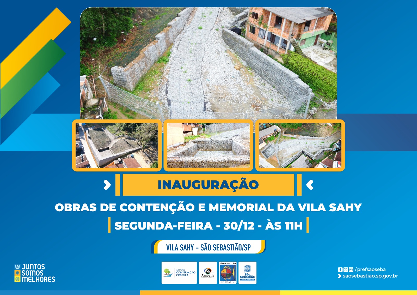 A Prefeitura de São Sebastião inaugura, na próxima segunda-feira (30), às 11h, as obras de contenção da Vila Sahy, na Costa Sul, e também um memorial em homenagem às vítimas da catástrofe ocorrida no dia 19 de fevereiro de 2023. A região vai a mais atingia e onde teve mais óbitos.