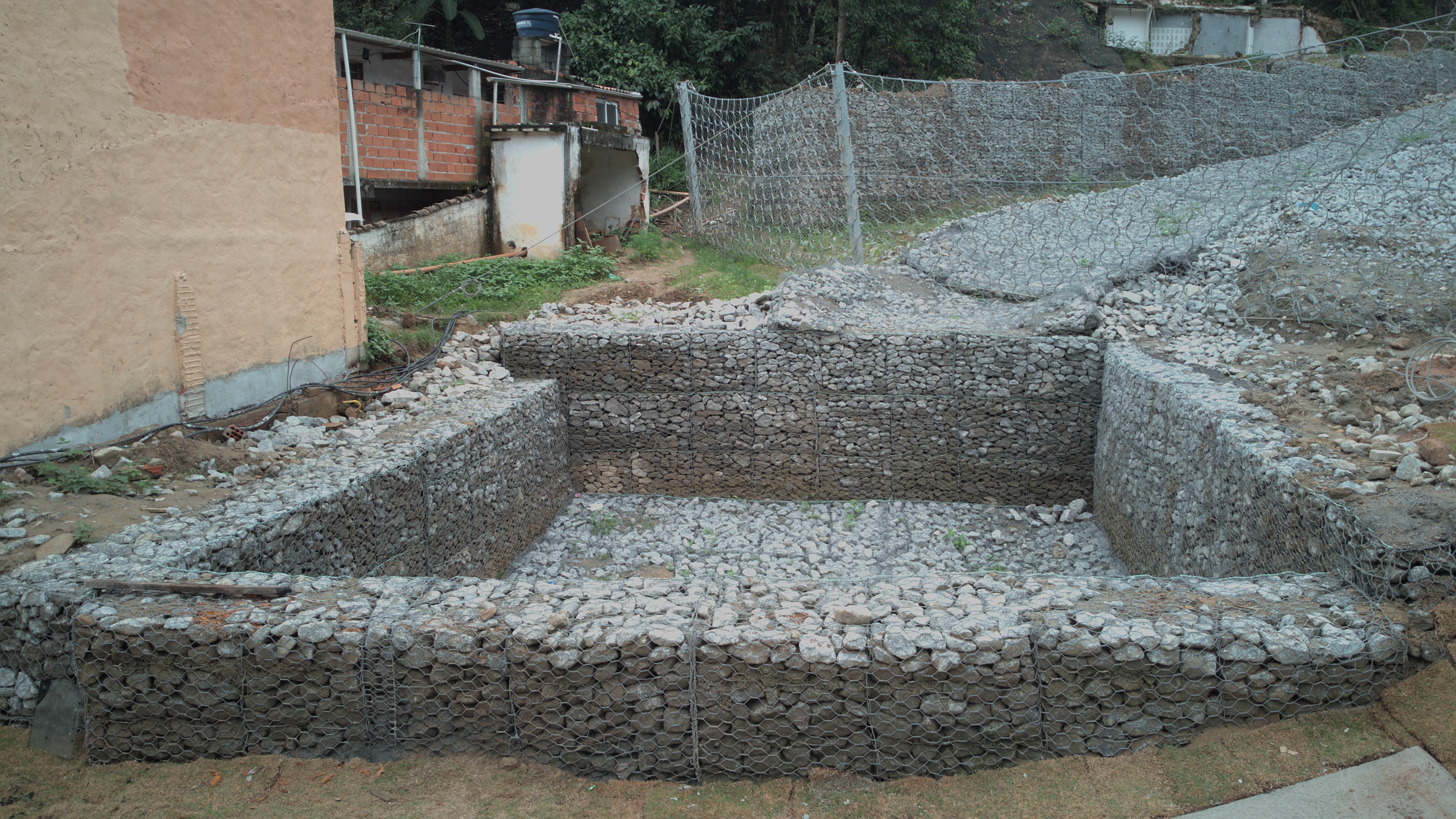 A Vila Sahy também foi contemplada com terraplanagem, contenções em solo grampeado com concreto projetado, plantio de vegetação, instalação de barreiras de contenção flexíveis e muros de gabião.