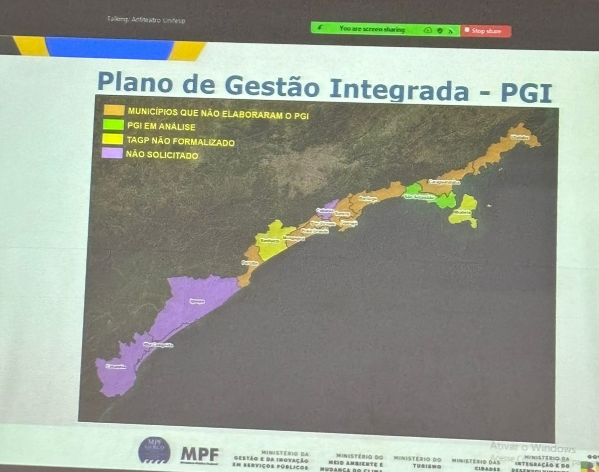 A constatação ocorreu durante a 6ª Oficina de Capacitação em Gestão de Praias realizada nos dias 24 a 26 de junho pelo Ministério da Gestão e Inovação em Serviços Públicos, por meio da Secretaria de Patrimônio da União (SPU), em Santos.