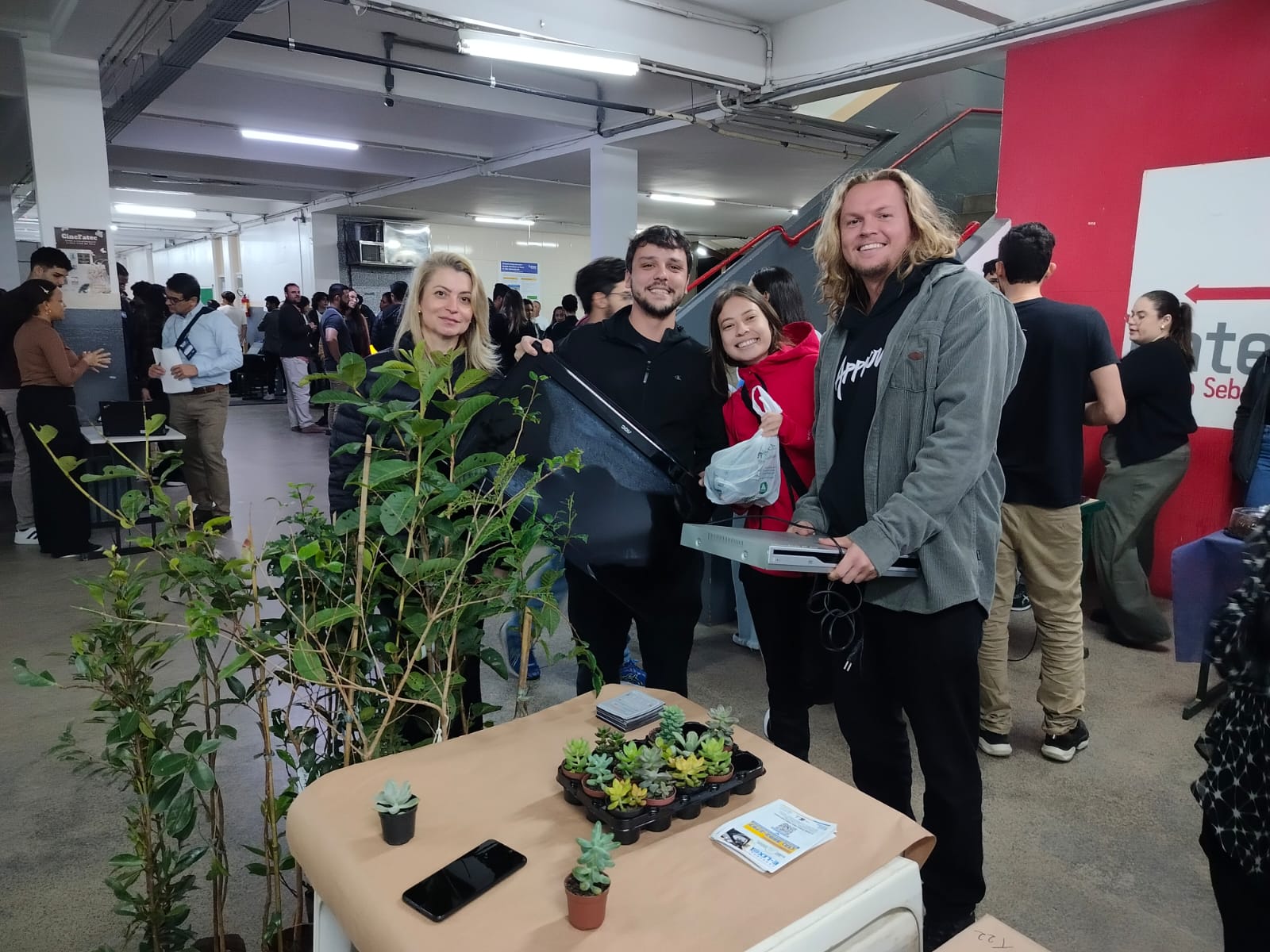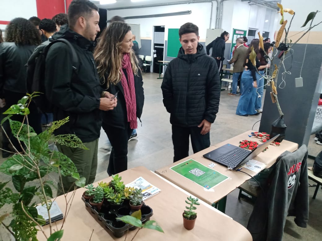#PraTodosVerem: imagens de alunos e professores durante a exposição, troca de lixo eletrônico por mudas nativas.