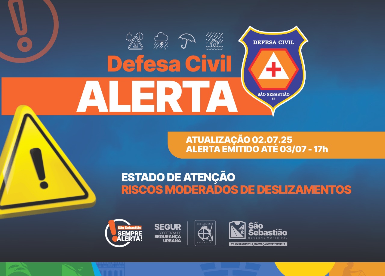 Por volta das 17h30 foi emitido SMS alertado sobre o risco moderado para deslizamentos de terra. A orientação é para que moradores de áreas de risco busquem locais seguros até o próximo alerta.