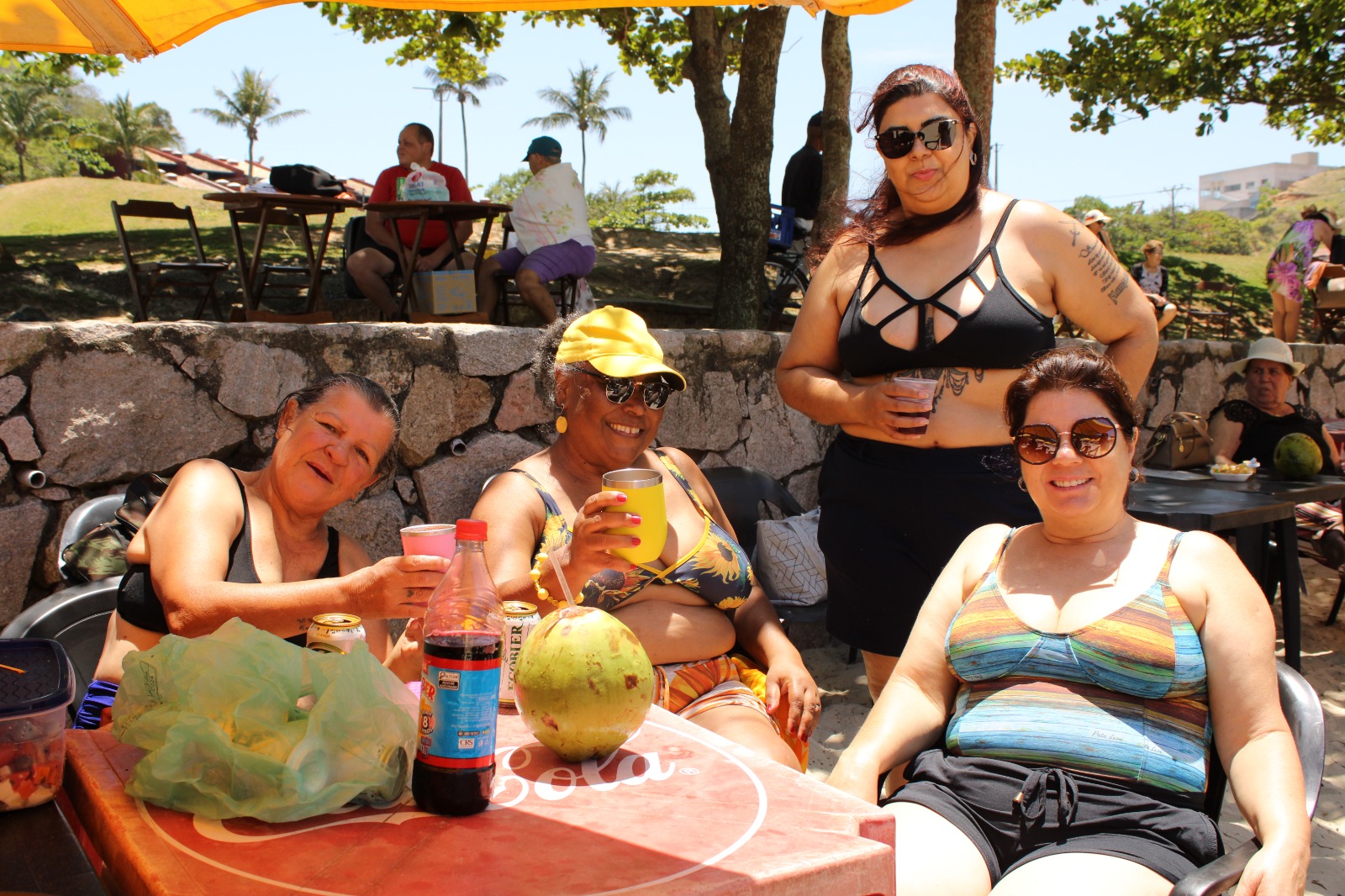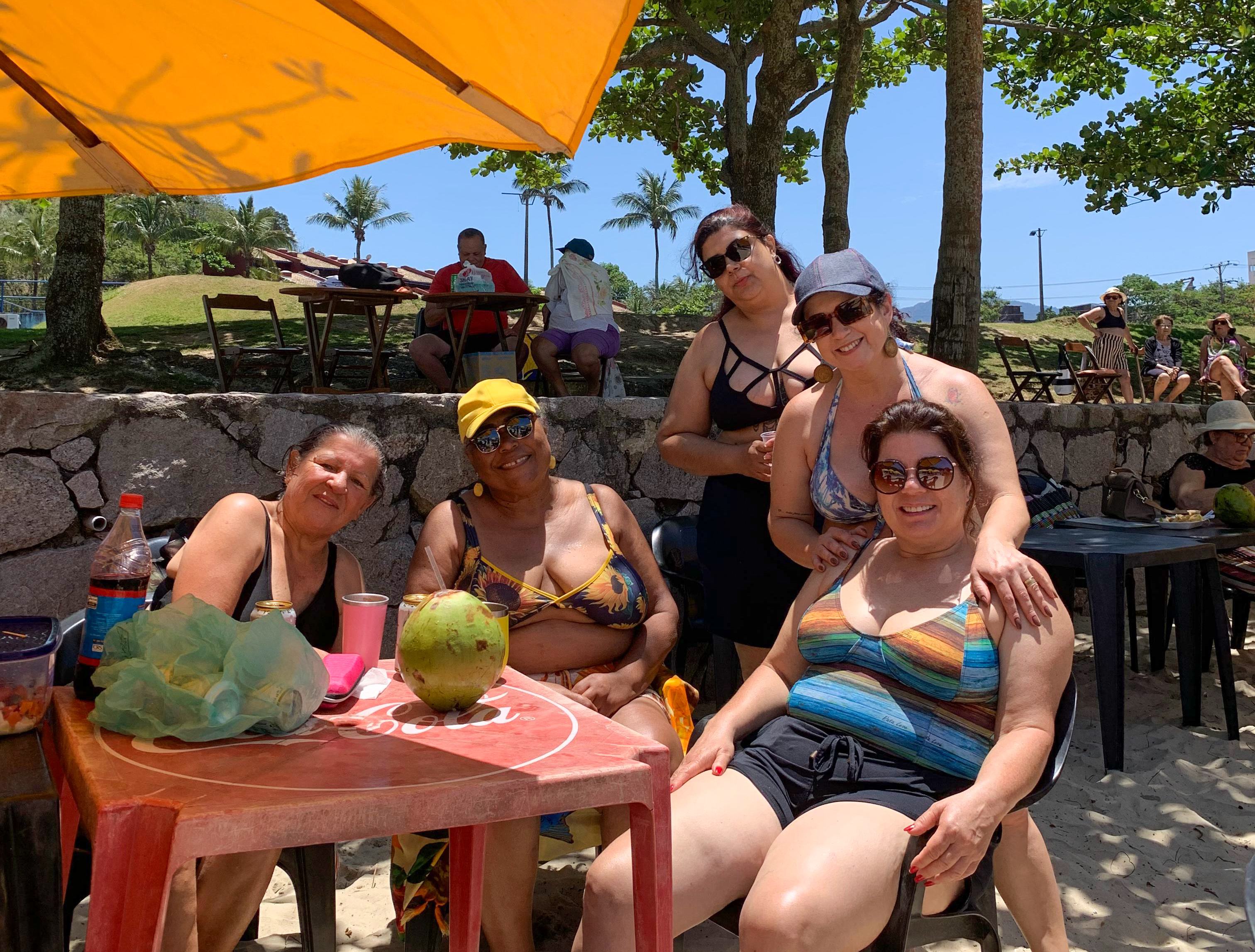 #PraTodosVerem: grupo de idosos aproveitando um dia de sol na Praia do Balneário dos Trabalhadores. Fim da descrição.