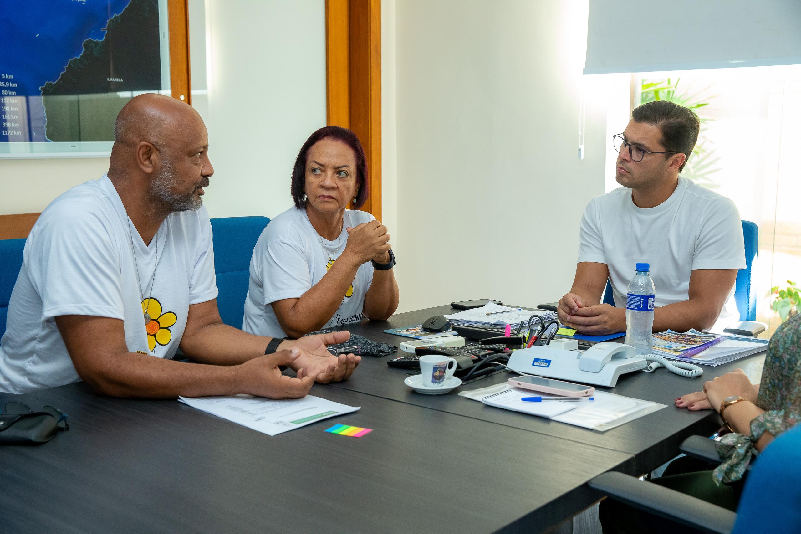 O prefeito de São Sebastião, Reinaldinho Moreira, recebeu na terça-feira (27/5), representantes do Sindicato dos Professores das Escolas Públicas Municipais (Siproem). A secretária da Educação, Marta Braz, também esteve presente.