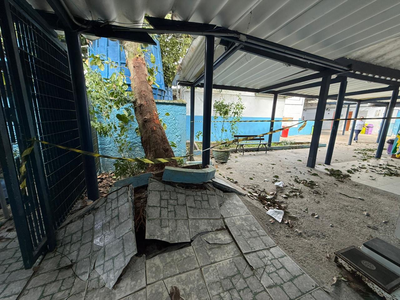 Na EE Plínio Gonçalves de Oliveira - EM Prof.ª Nair Ribeiro de Almeida, em Juquehy, o telhado do setor administrativo foi completamente arrancado. A decisão sobre a suspensão das aulas do Estado será tomada pela Diretoria de Ensino.