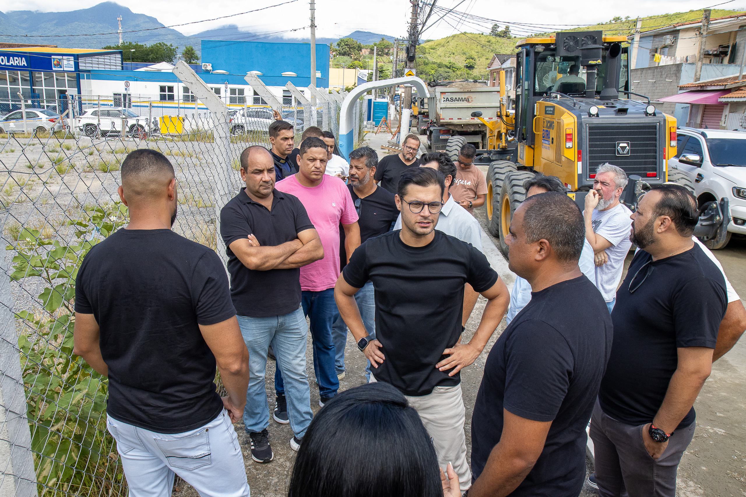 #PraTodosVerem – Prefeito Reinaldinho e vereadores estão em frente à área que será transformada em praça para a comunidade. Fim da descrição.