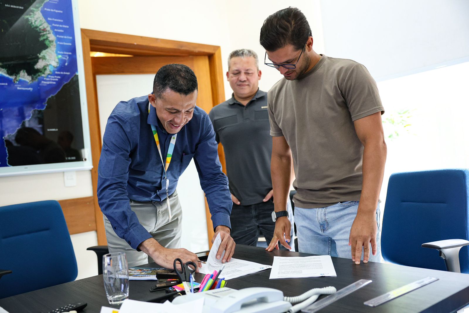 Participaram da reunião Émerson José dos Santos, diretor regional da Sabesp no Vale do Paraíba e Litoral Norte; Rui Cesar Rodrigues Bueno, gerente da Unidade Litoral Norte; e os coordenadores de obras no Litoral Norte, Leandro Santos de Araújo e Wellington Silva Pereira.