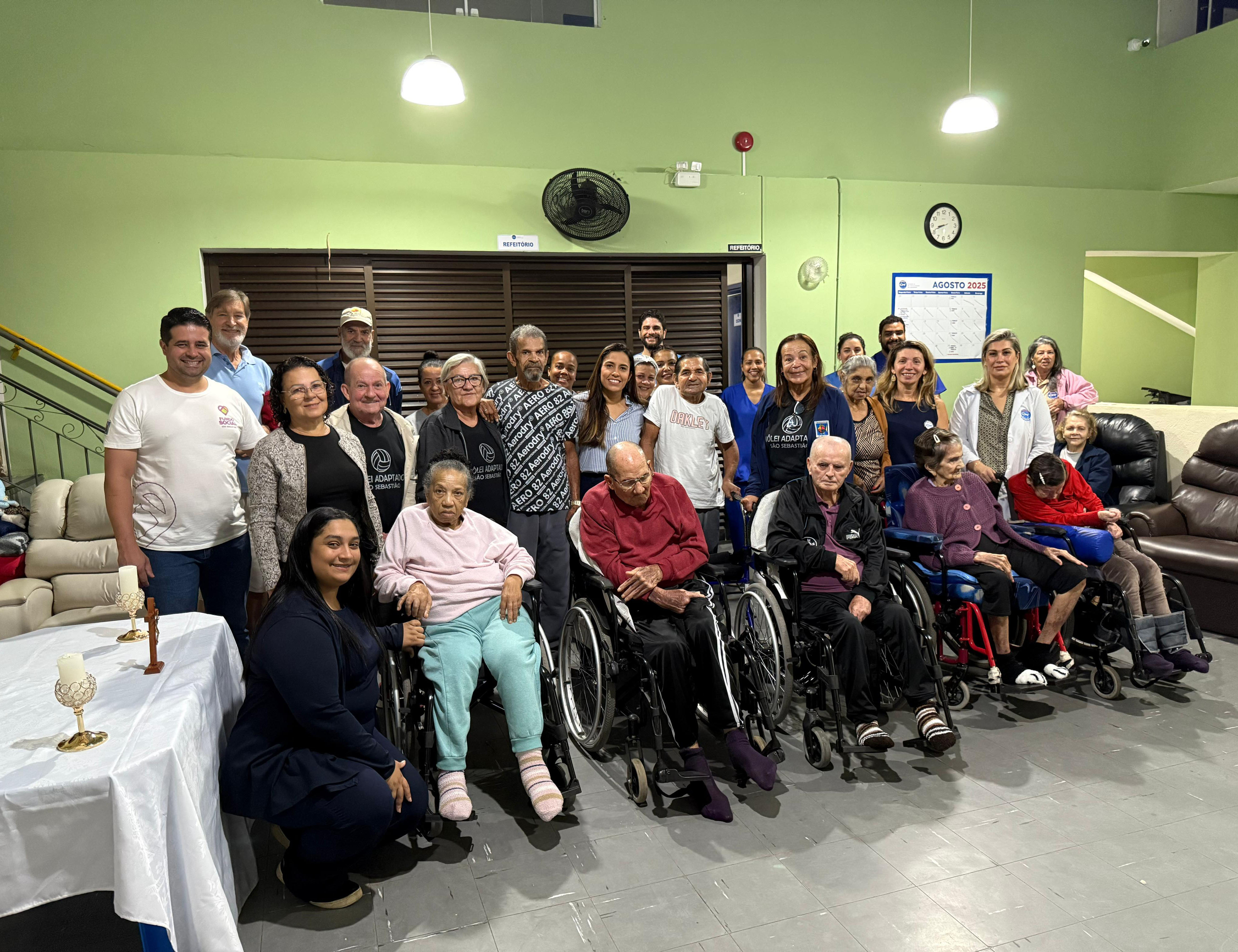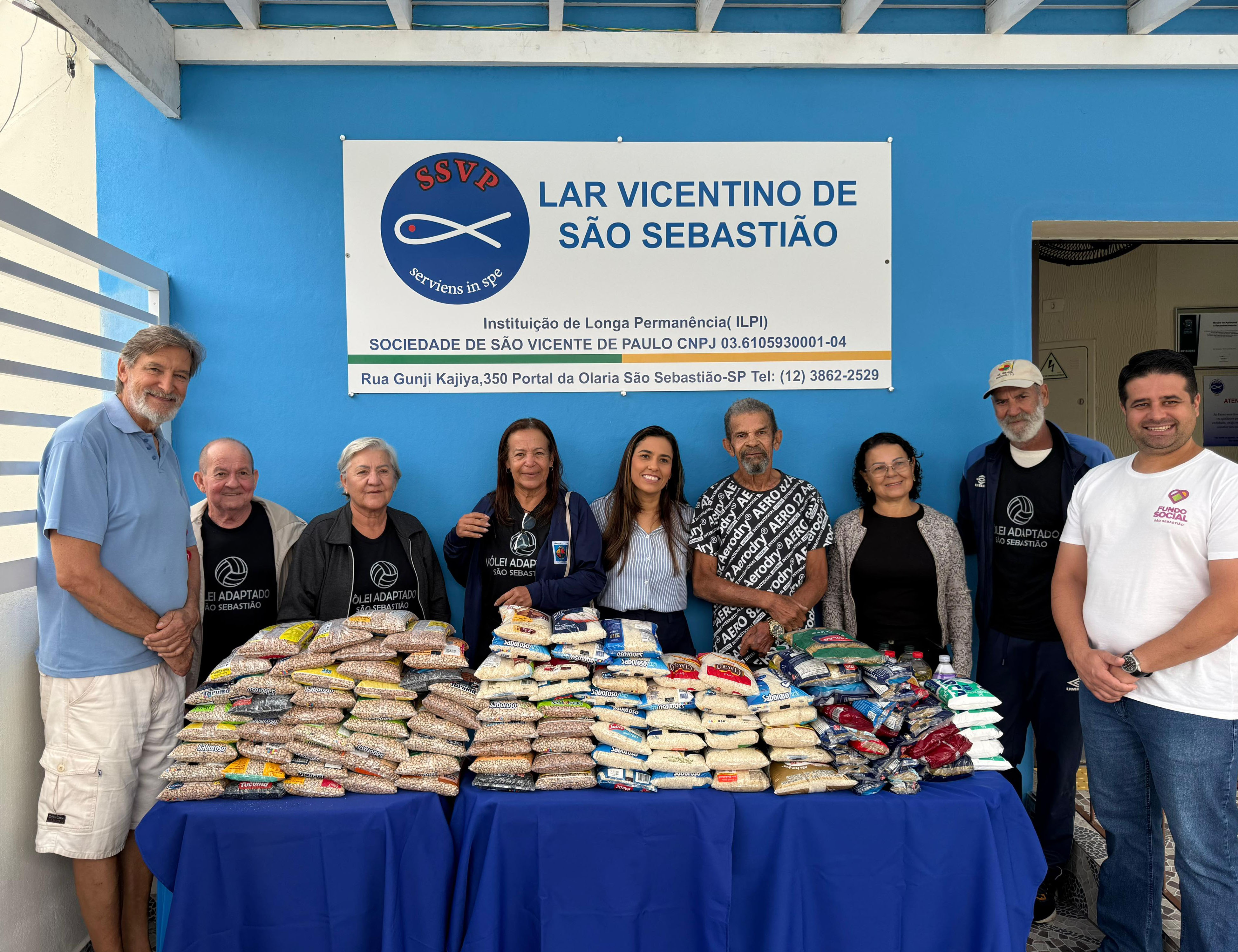 A Secretaria da Pessoa com Deficiência e do Idoso (Sepedi), representantes do grupo dos idosos do Vôlei Adaptado, com apoio do Fundo Social de São Sebastião, realizou nesta sexta-feira (29/8) uma ação solidária com a entrega de 160 kg de alimentos ao Lar Vicentino, Instituição de Longa Permanência que acolhe idosos em São Sebastião.