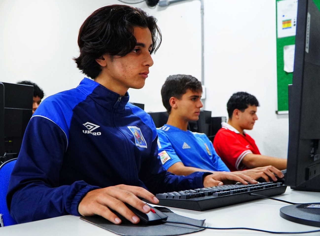 #PraTodosVerem: imagens mostram diferentes momentos da rotina escolar na Fatec de São Sebastião. A primeira foto exibe a fachada da instituição, com uma placa na entrada identificando a escola, rodeada por plantas e árvores. A segunda imagem apresenta três jovens sentados em frente a computadores em uma sala de informática, concentrados nas atividades. Já a terceira foto mostra o refeitório da escola, onde vários estudantes almoçam e conversam em grupos nas mesas coletivas, transmitindo um ambiente de convivência e integração.