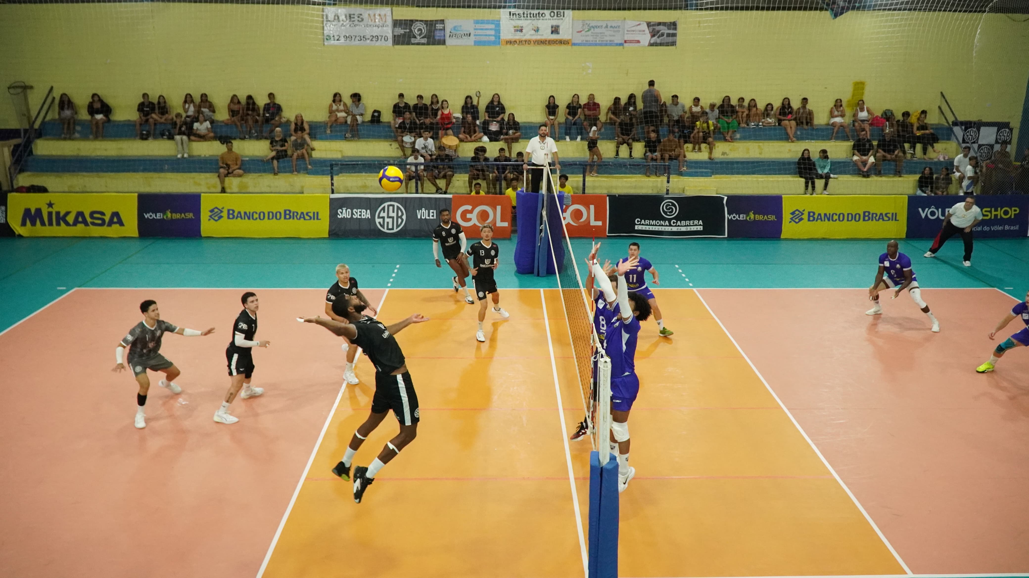 #PraTodosVerem: imagens de partida do time masculino de voleibol de São Sebastião. Fim da descrição.