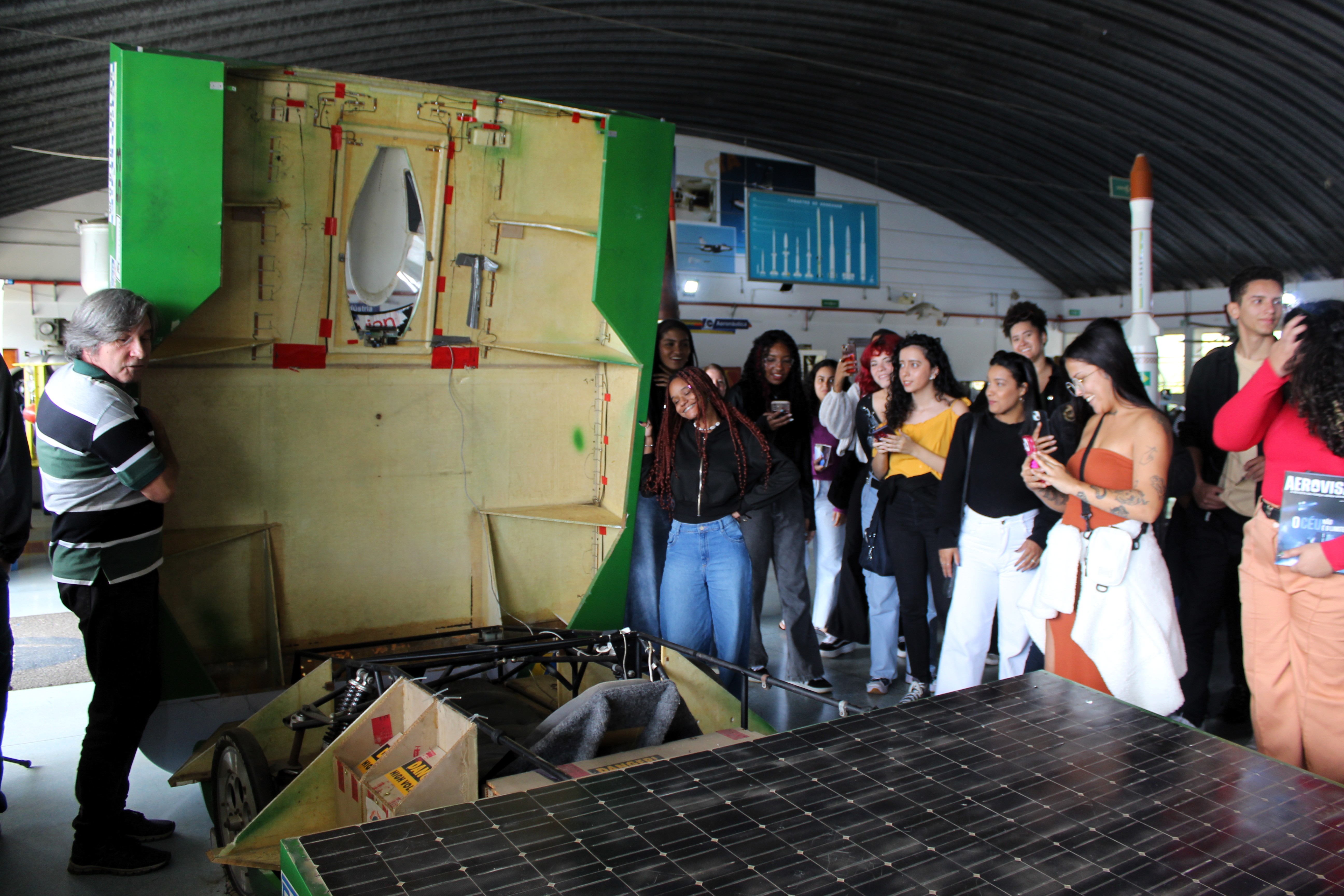Na parte da manhã, os alunos conheceram o Memorial Aeroespacial Brasileiro, onde participaram de uma palestra sobre a origem da Embraer e as conquistas da indústria aeroespacial brasileira. Em seguida, fizeram uma visita guiada pelo interior do memorial e, por fim, entraram na réplica do primeiro avião construído pelo Centro Técnico Aeroespacial (CTA).