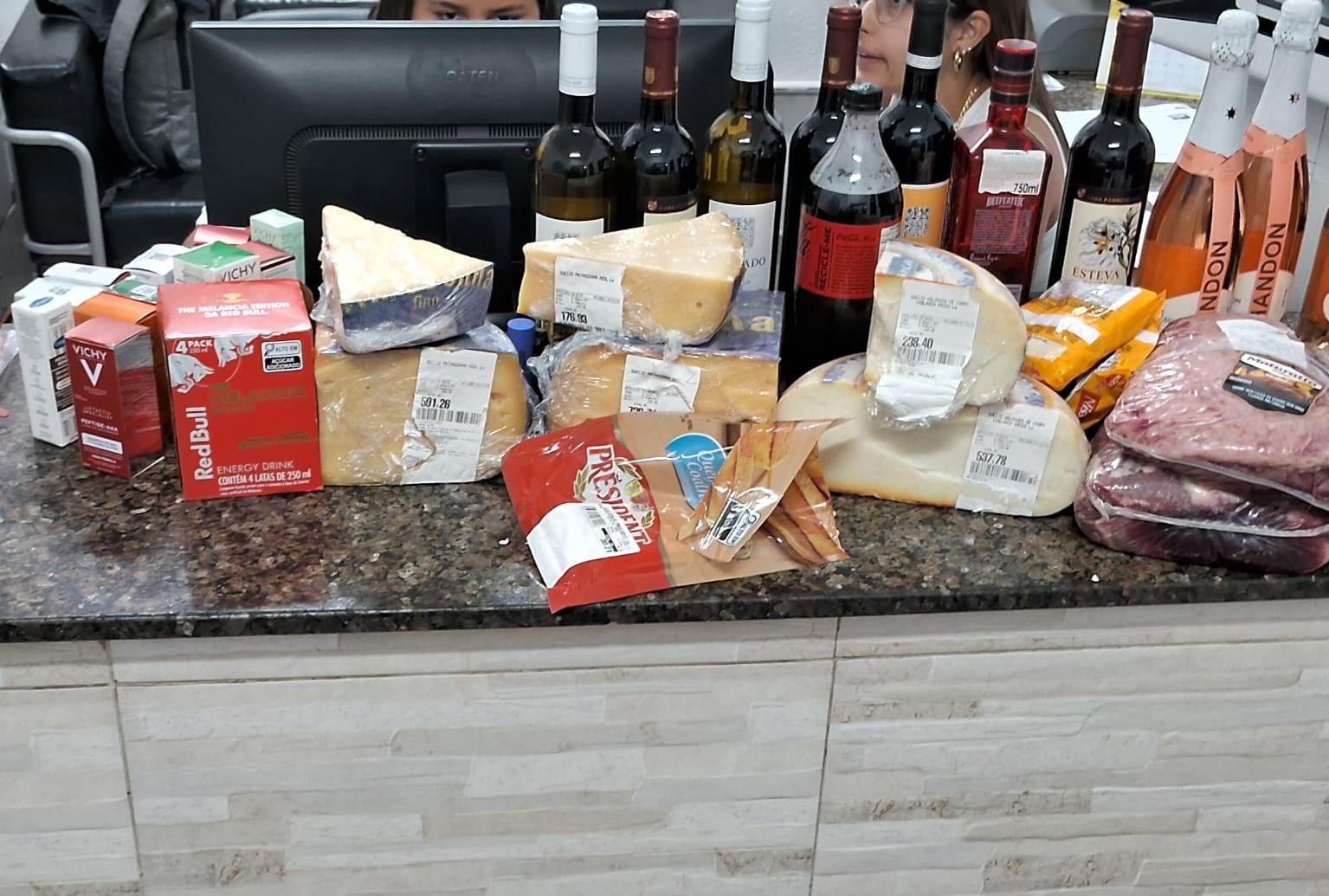 Grupo levou de champanhe a queijos; valor total em mercadorias apreendidas chega a R$ 8 mil