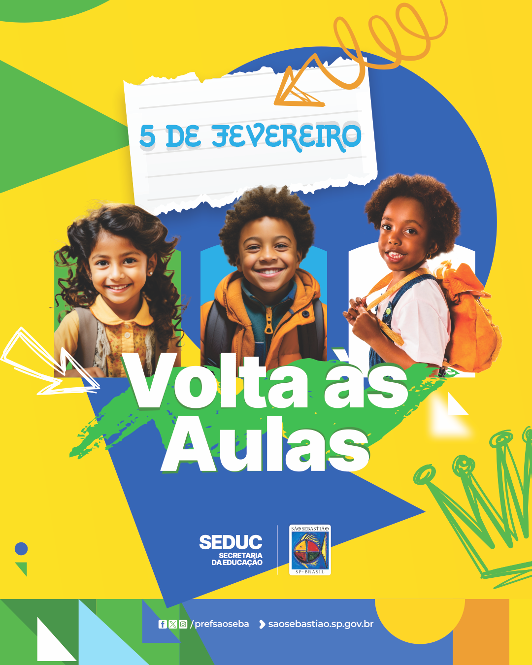 A Prefeitura de São Sebastião, por meio da Secretaria da Educação (Seduc), realiza nesta quarta-feira (5) a volta às aulas nas escolas da rede pública, marcando o início do ano letivo no município.