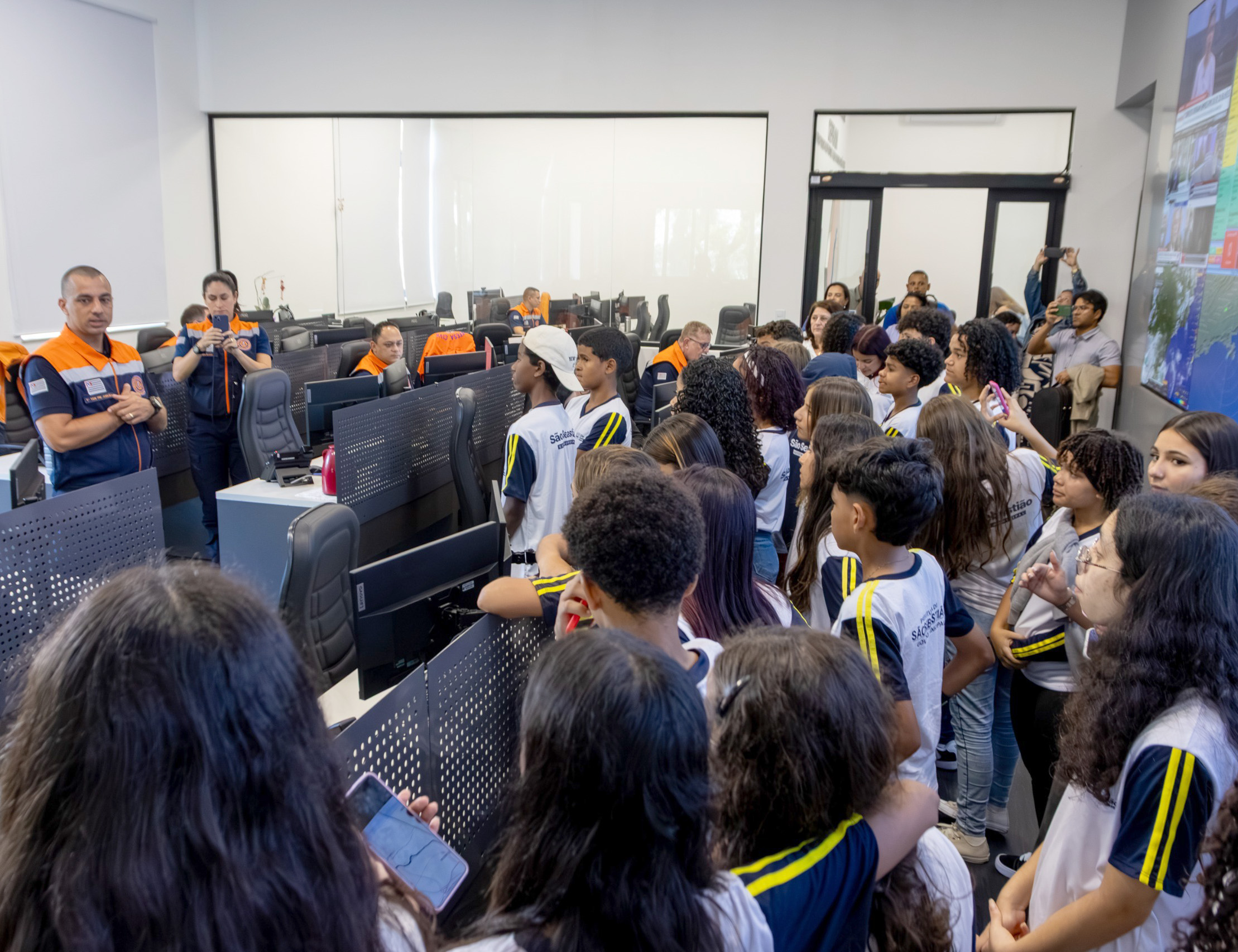 Além da participação na olimpíada, os estudantes realizaram um tour pelo Palácio dos Bandeirantes, onde puderam conhecer parte da estrutura do Governo do Estado, apreciar obras de arte e ambientes históricos do edifício. A visita incluiu também uma passagem pelo Centro de Gerenciamento de Emergências Climáticas (CGE), onde os alunos observaram como são feitos o monitoramento e as análises de risco relacionadas a eventos climáticos extremos.