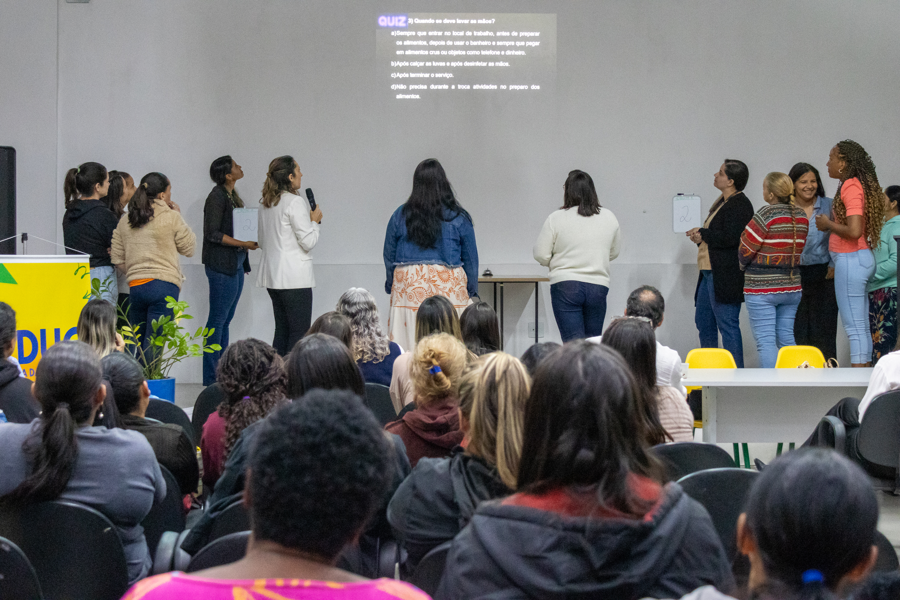 No primeiro dia, as participantes receberam orientações sobre como agir em situações de emergência, como engasgos, reações alérgicas, cortes, quedas ou queimaduras, situações que podem ocorrer no cotidiano das unidades escolares. Já no segundo dia, a formação foi conduzida por especialistas da empresa Ideal Alimentação, responsável pela merenda escolar do município, e abordou temas como higiene pessoal, organização da cozinha, controle de temperatura, armazenamento dos alimentos e prevenção de contaminações.