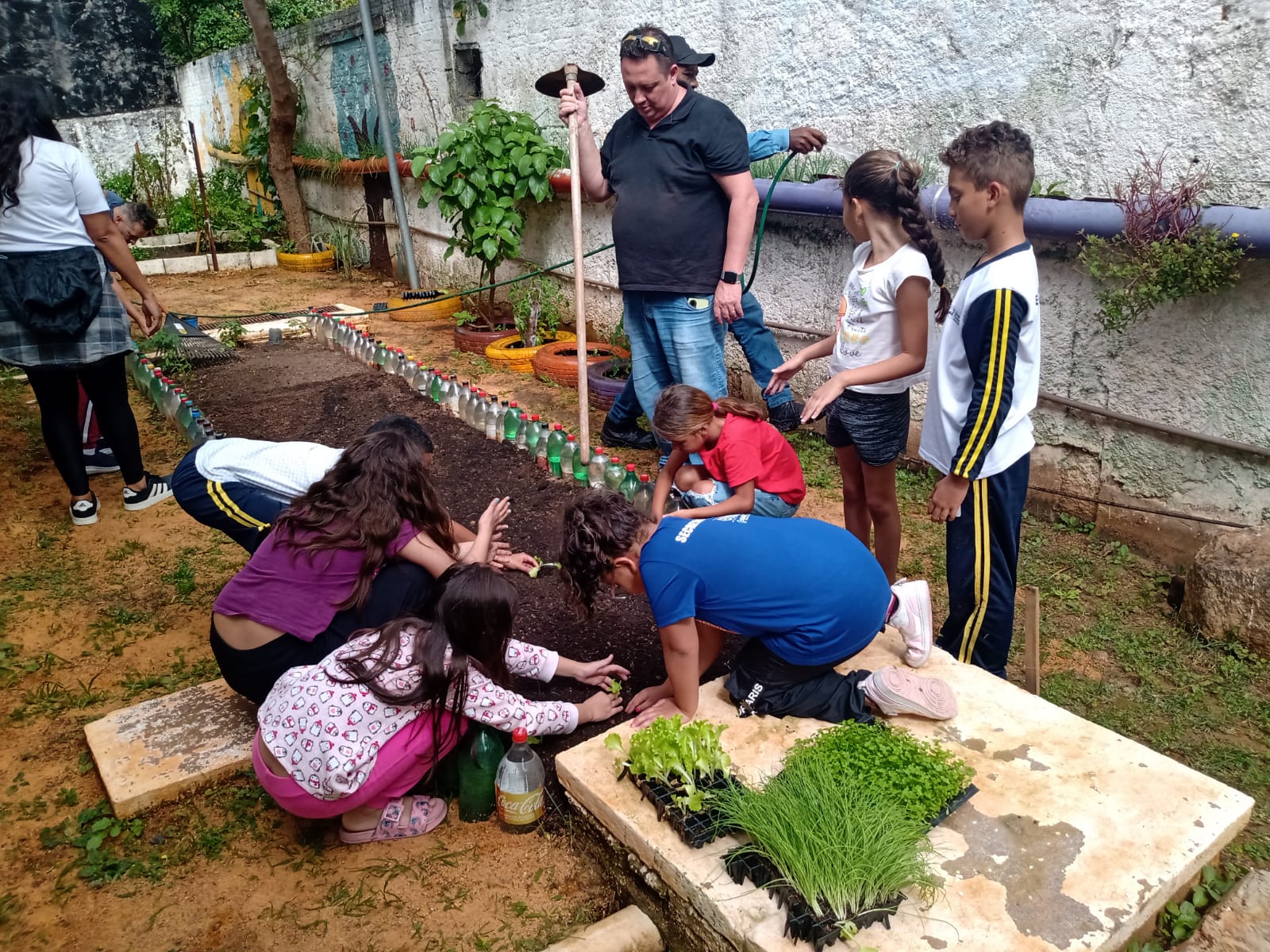 A ação contou com a participação de 40 alunos e três coordenadores do projeto, com apoio de servidores da Semam, que trabalharam na implementação de uma horta através do plantio de algumas hortaliças como, alface, cebolinhas e salsinha.