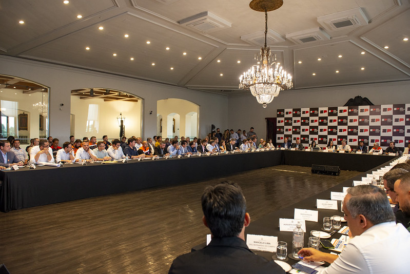 #PraTodosVerem: fotos do prefeito Reinaldinho Moreira durante reunião no Palácios dos Bandeirantes. Fim da descrição.