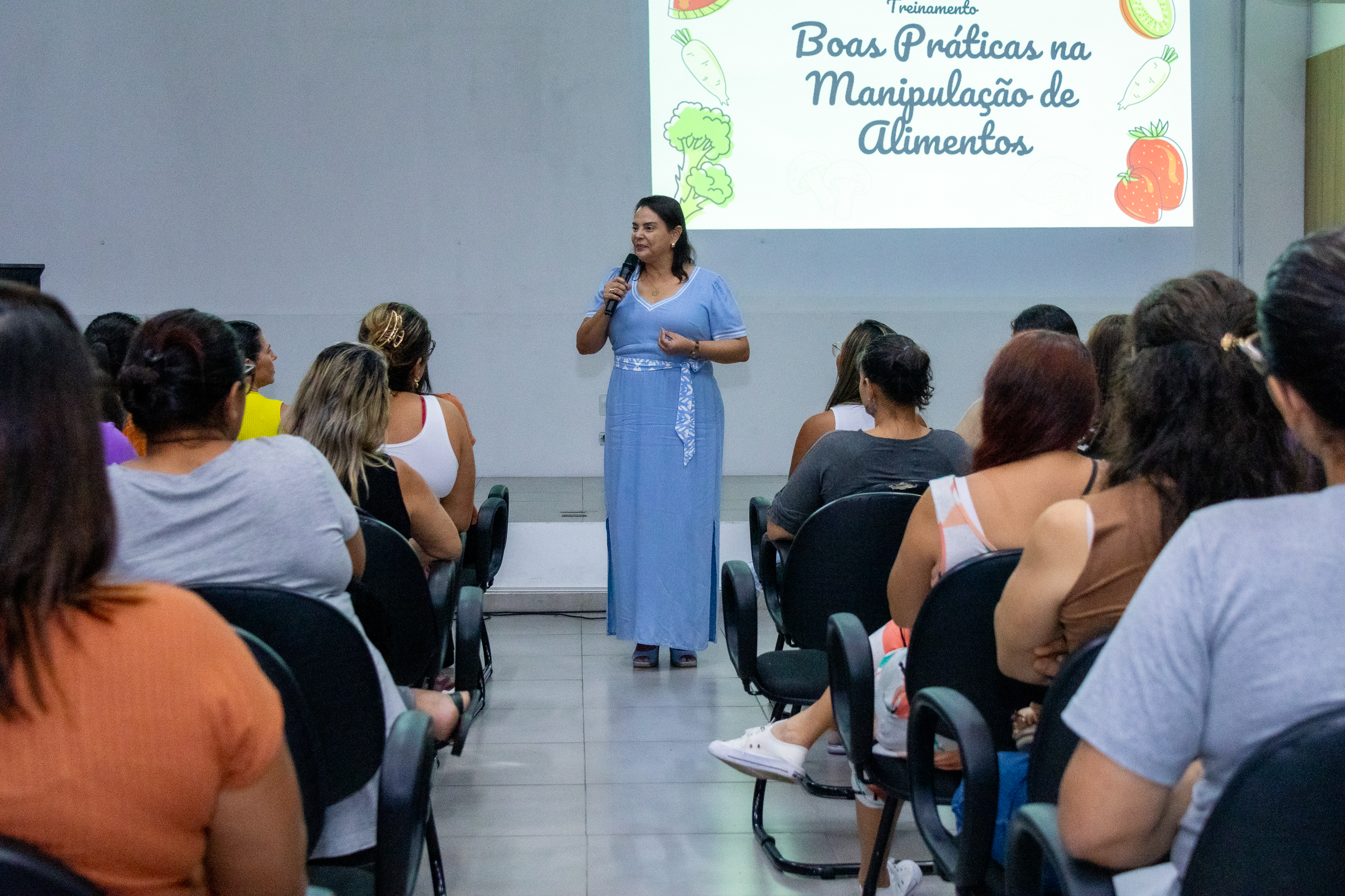 O encontro ocorreu no auditório da Seduc e proporcionou às profissionais um aprofundamento sobre boas práticas de higiene e segurança alimentar, normas sanitárias vigentes e estratégias para promover a educação alimentar, ambiental e sanitária no ambiente escolar.