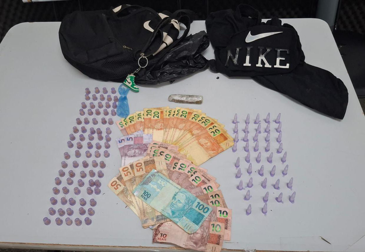 No local, havia duas viaturas em patrulhamento quando os policiais avistaram um grupo de homens que fugiu ao perceber a aproximação das equipes. Um deles teria arremessado uma mochila no chão.