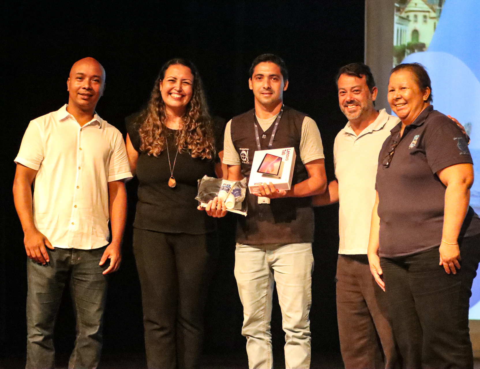 #PraTodosVerem: Novos tablets e EPIs para os agentes comunitários de saúde São Sebastião, entregues durante cerimônia realizado no Teatro Municipal. Fim da descrição.