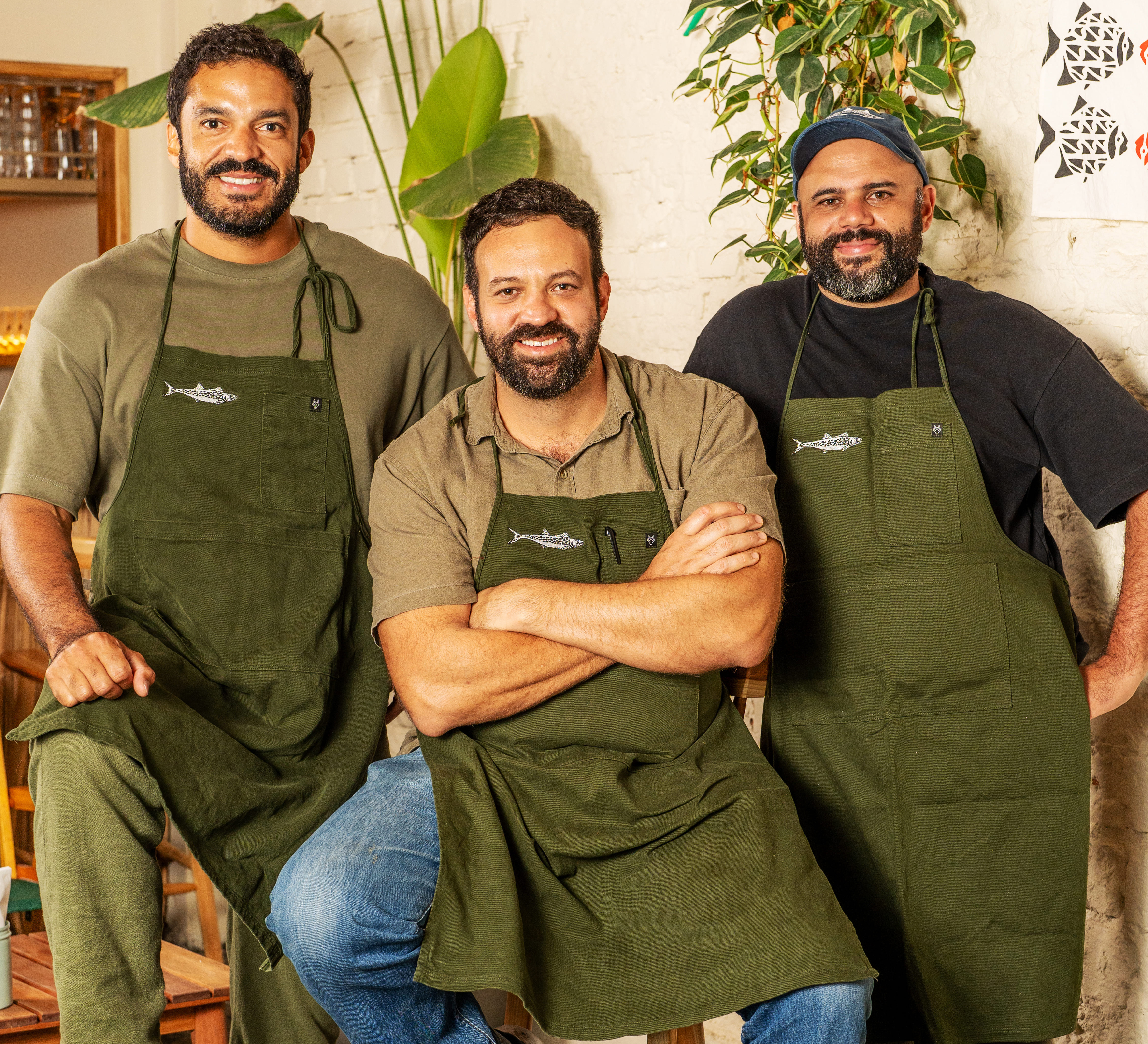 #PraTodosVerem: imagens de perfil de André Marques, Larissa Januário, Tiago Castanho, Marcelo Corrêa Bastos, Gustavo Rodrigues, Raul Vieira e Renan Mattos, nas cozinhas dos restaurantes. Fim da descrição.
