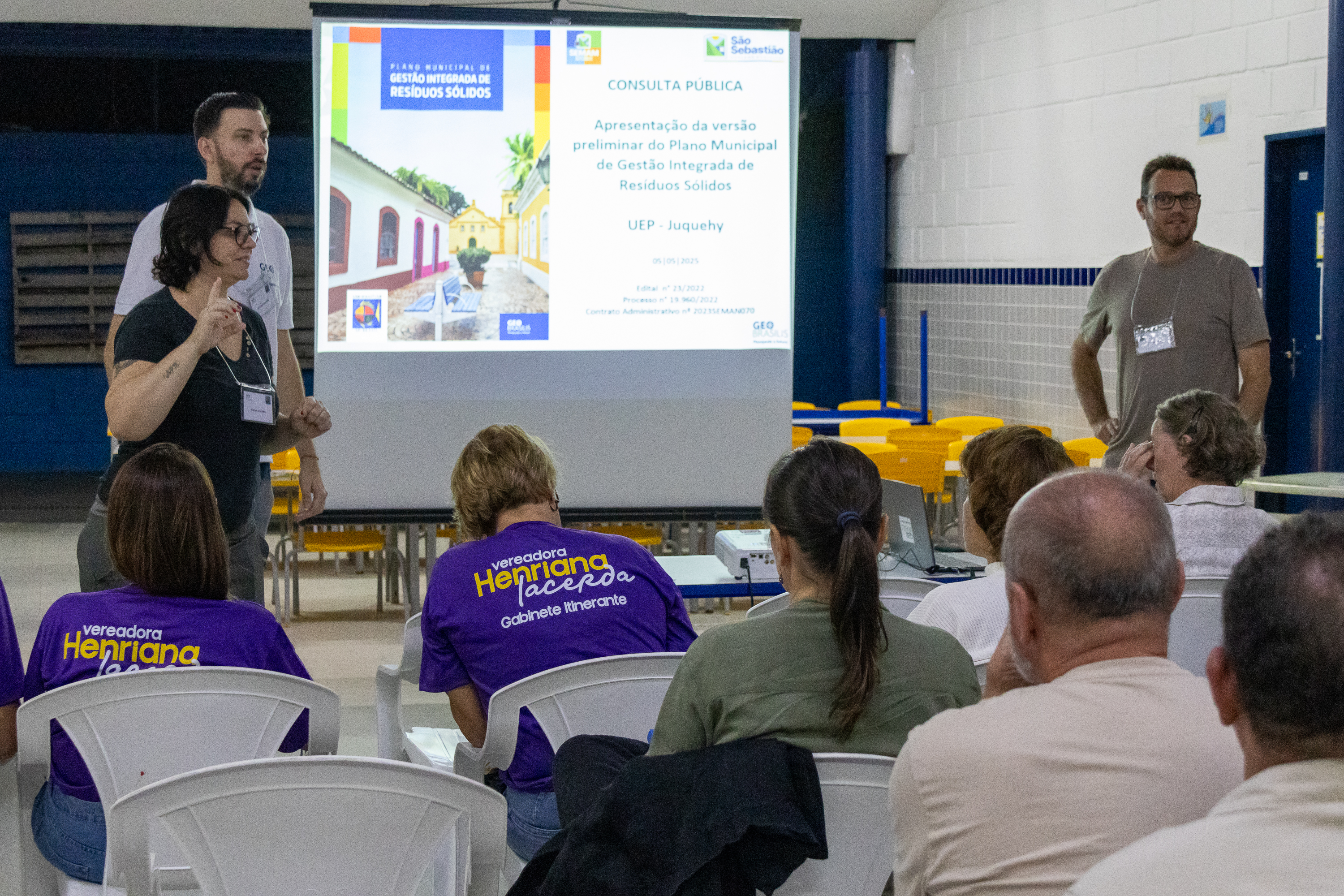 A Prefeitura de São Sebastião, por meio da Secretaria do Meio Ambiente (Semam), realizou na segunda-feira (5/5) a primeira Consulta Pública parte do Plano Municipal de Gestão Integrada de Resíduos Sólidos (PMGIRS), no bairro de Juquehy, na Costa Sul do município.