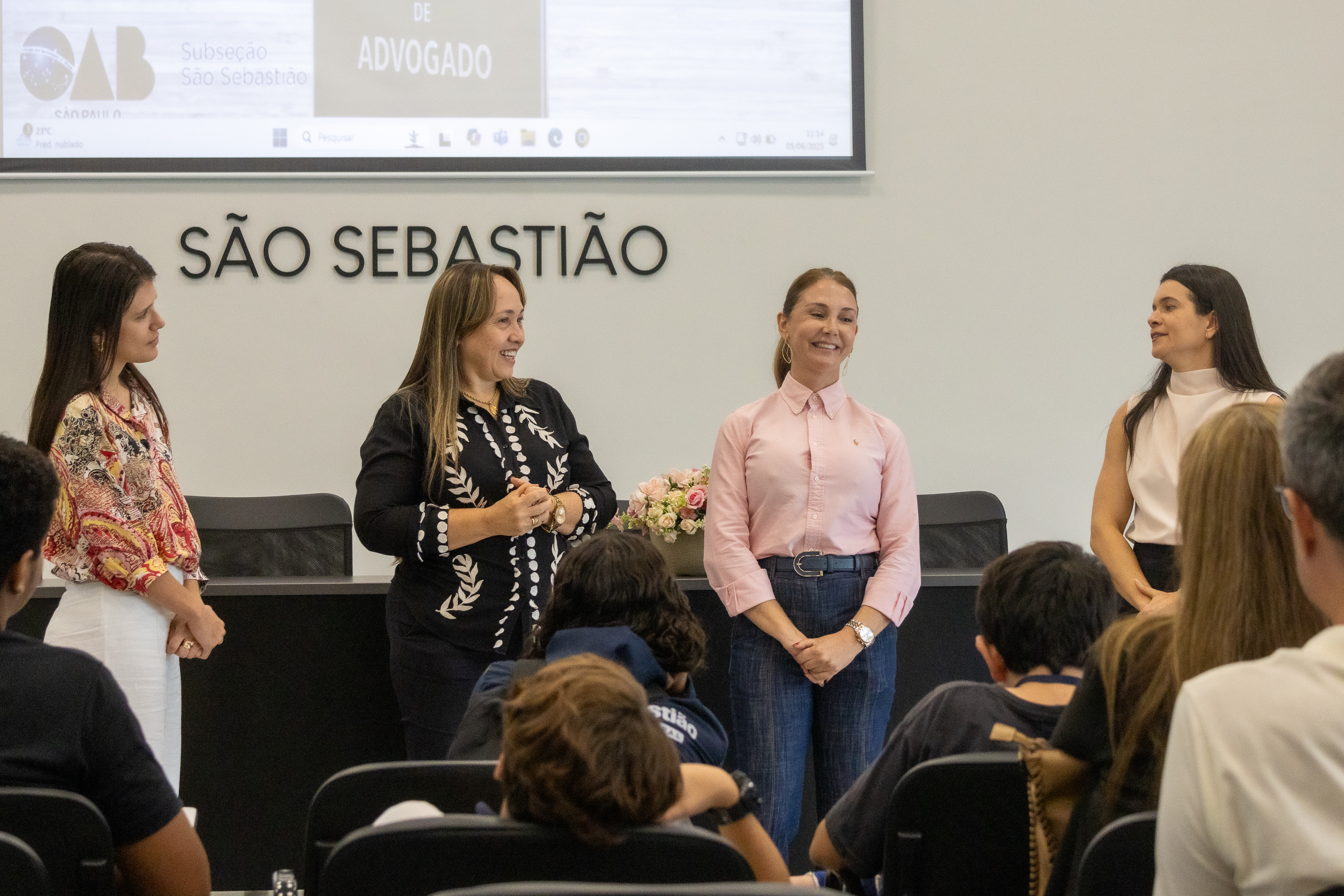 Em seguida, os jovens parlamentares conheceram a sede da 136ª Subseção da Ordem dos Advogados do Brasil (OAB) de São Sebastião, onde os alunos foram recebidos por representantes da entidade e puderam conhecer de perto o papel da advocacia na promoção da justiça e da cidadania.