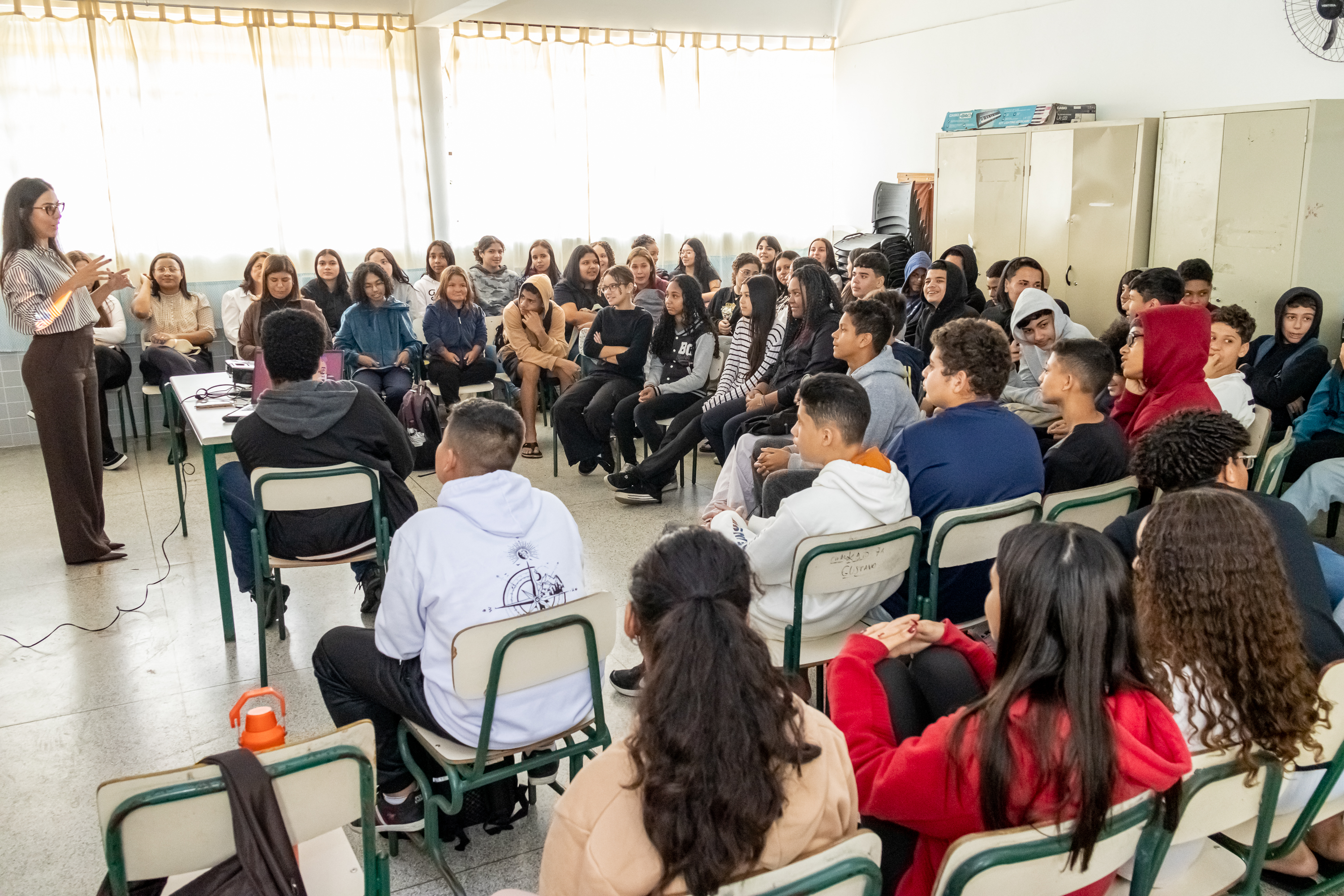 “O projeto OAB Vai Escola é uma parceria com a OAB e a Secretaria da Educação, e também o Programa Cidadania e Justiça Também se Aprendem na Escola, que é uma parceria com o Judiciário. Promovemos palestras e conversas com os alunos explicando sobre seus direitos, deveres e temas sensíveis como bullying, violência doméstica, abuso e exploração sexual de crianças e adolescentes. Hoje estamos retomando esses encontros na escola Walfrido, com a participação de advogados e juiz. É um momento rico de trocas e aprendizados sobre convivência em sociedade”, destacou a presidente da Comissão OAB Vai à Escola, Cláudia Cantanhede.