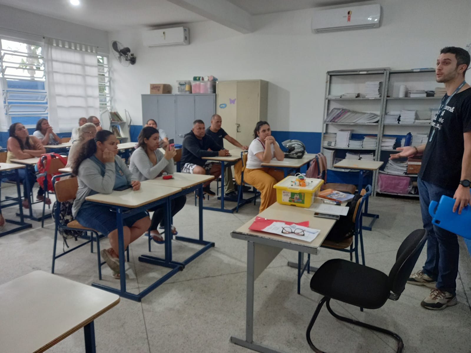 Para conhecer mais de perto e vivenciar como funciona a aplicação do programa de robótica educacional desenvolvido em São Sebastião, familiares de estudantes da EM Profª Maria Alice Rangel participaram de apresentações práticas do programa de robótica na escola. A atividade foi durante as reuniões de pais, entre os dias 29 a 31 de outubro. Ao todo, foram seis reuniões com demonstrações divididas por turmas.