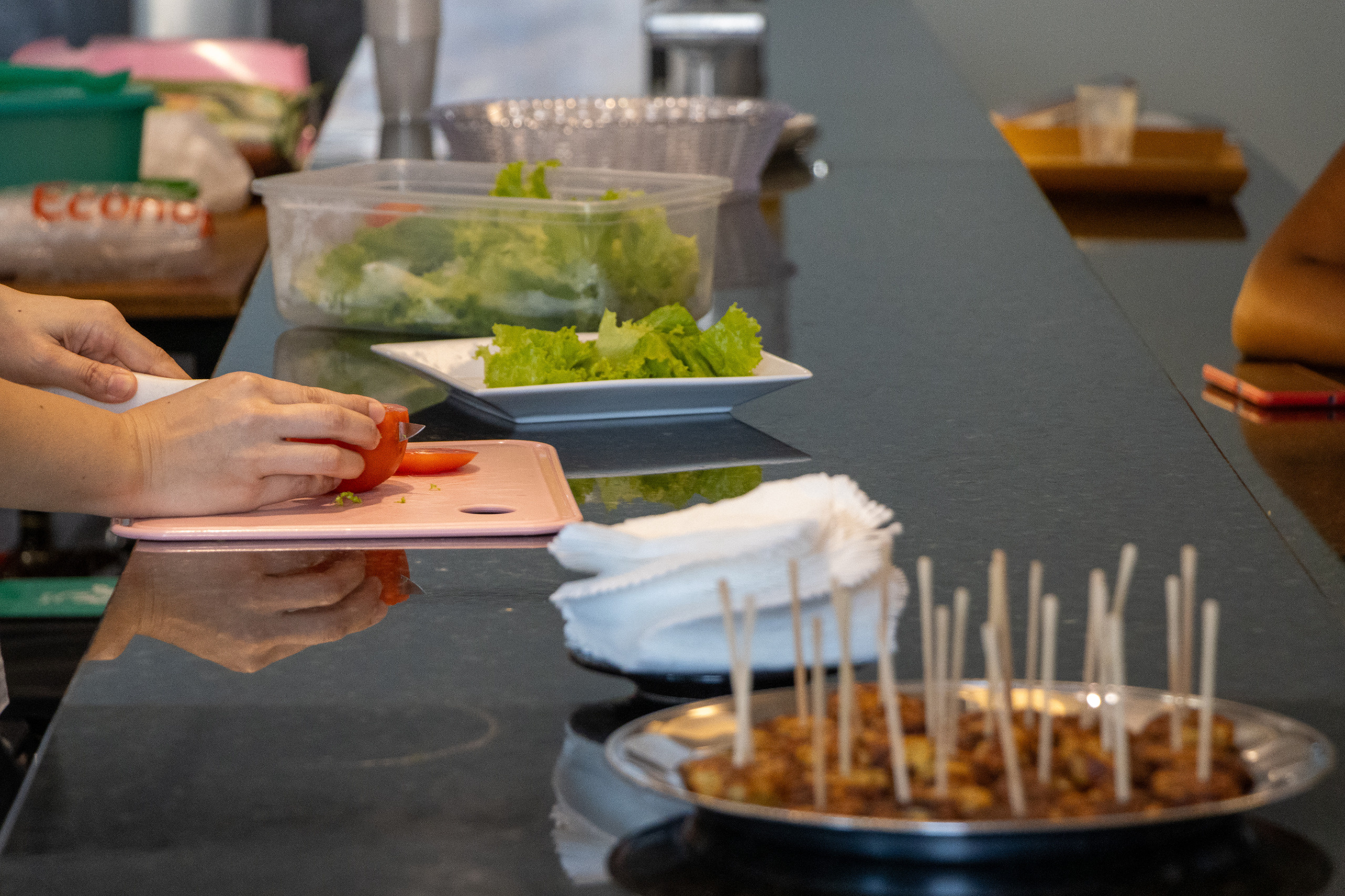 #PraTodosVerem: fotos de cursos envolvendo a manipulação de alimentos. Fim da descrição.