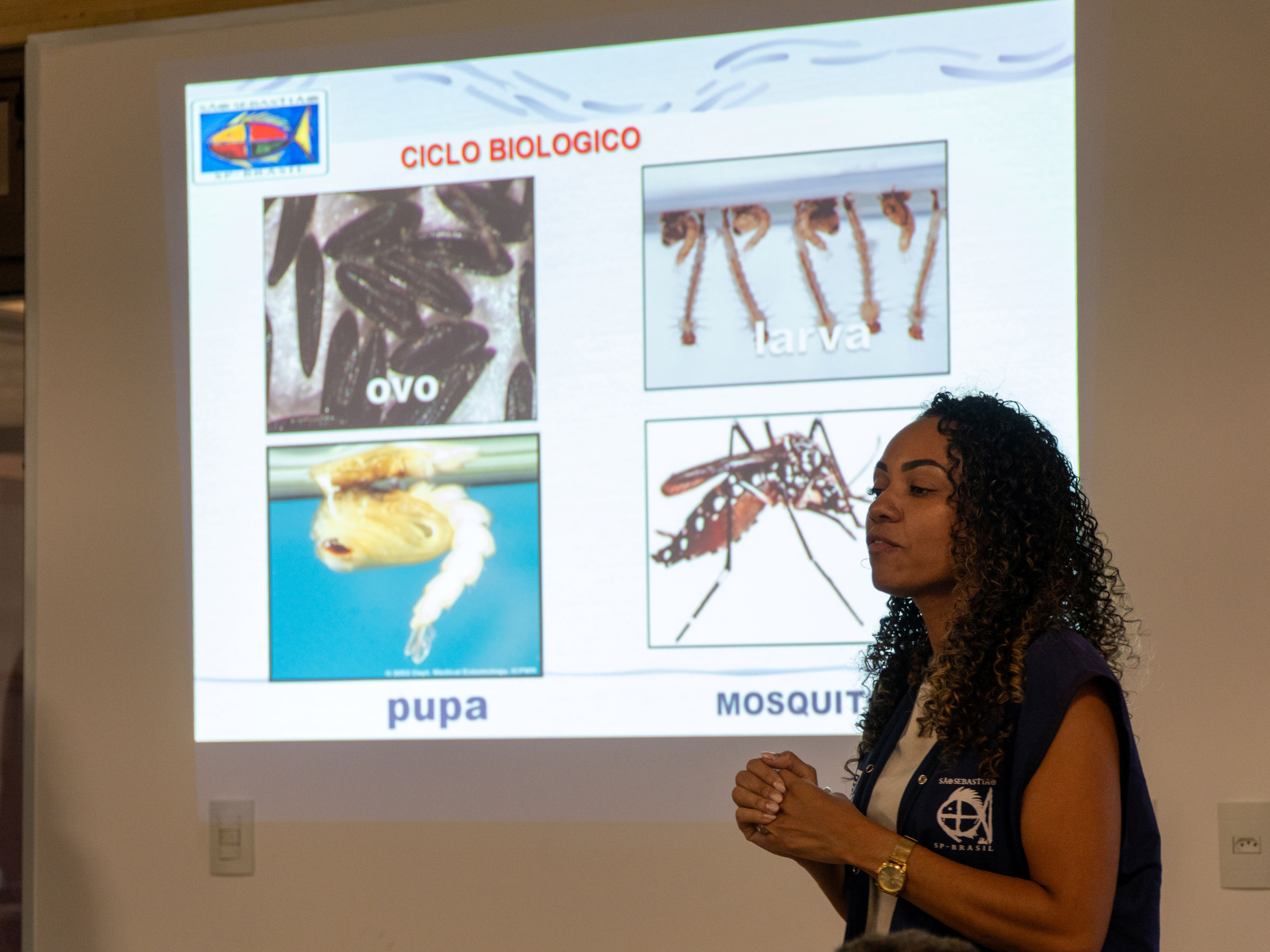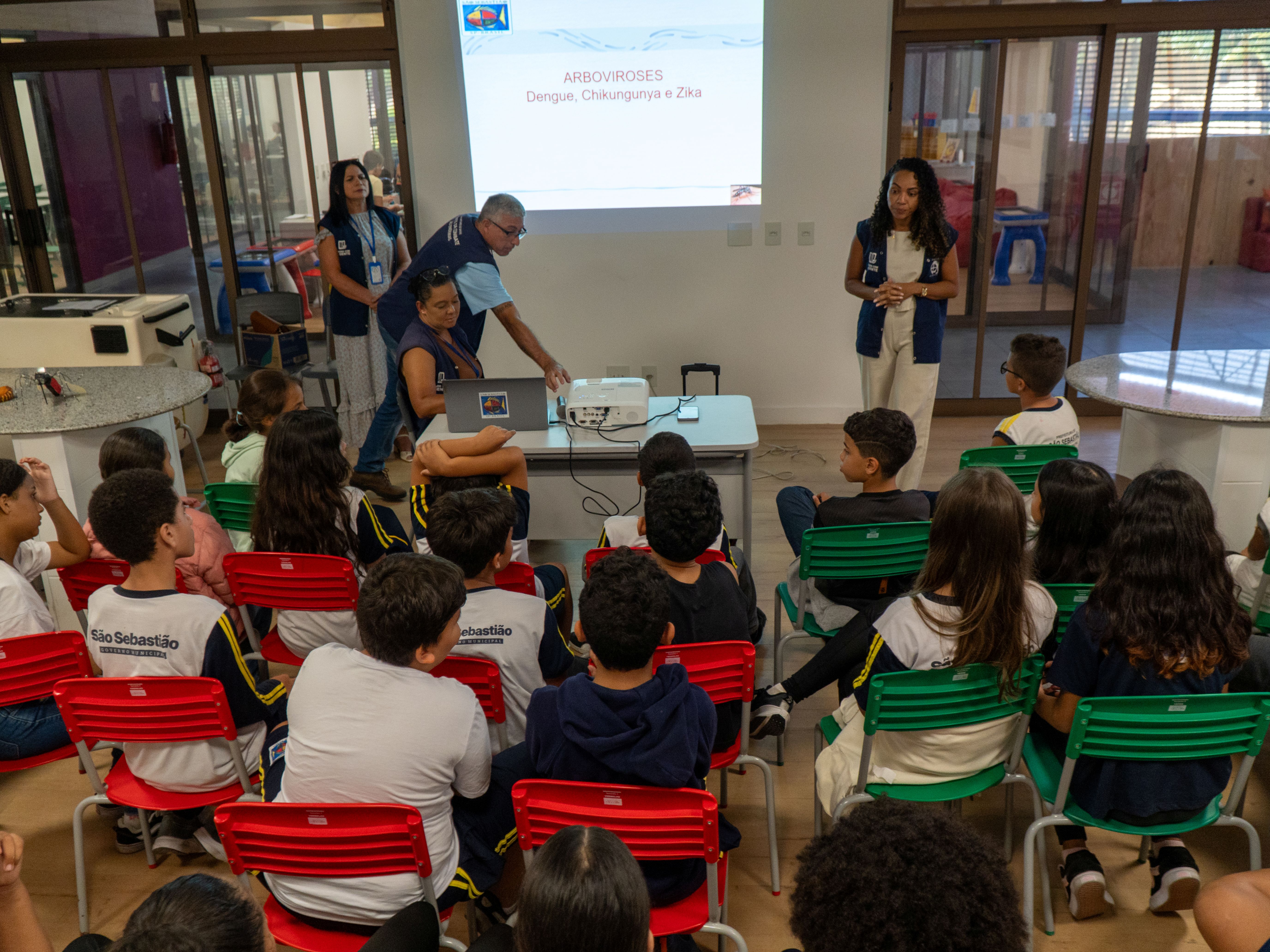 Além dos estudantes, professores e monitores também participam das ações formativas, reforçando a disseminação de informações fora do ambiente escolar e ampliando o alcance das medidas de prevenção às doenças transmitidas pelo mosquito.