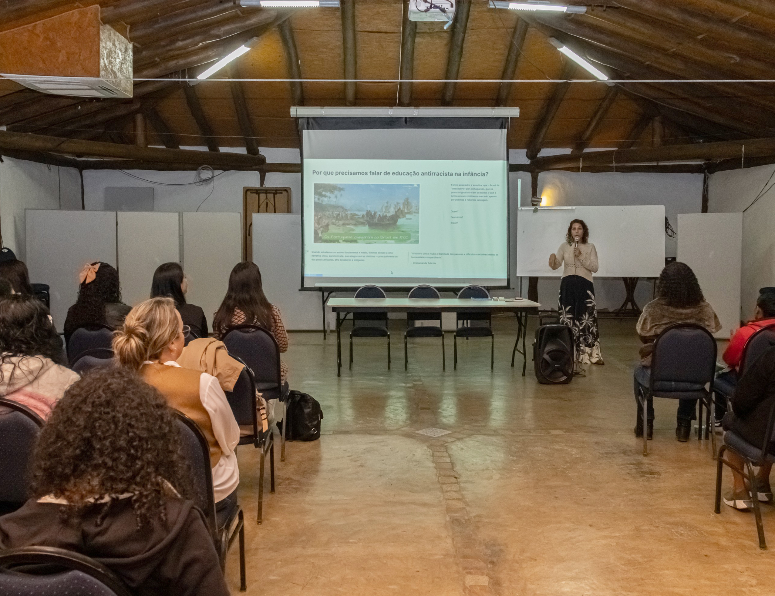 Além disso, a formação proporcionou um espaço de escuta e troca de saberes, promovendo o fortalecimento do compromisso coletivo com a formação de crianças com autoestima, mais conscientes, empáticas e respeitosas com as diferenças.