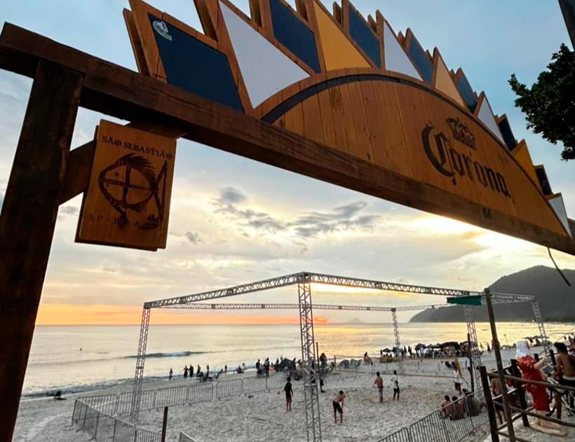 #PraTodosVerem: Imagens das Arenas Esportivas de Verão nas praias de Maresias e Porto Grande. Fim da descrição.