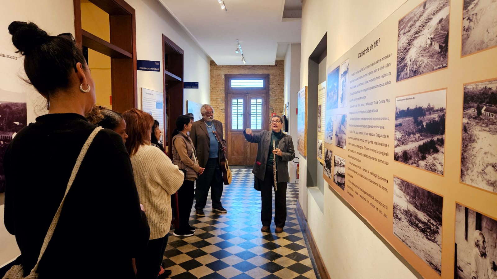 A visita foi conduzida pelos monitores culturais Júlio e Débora D’Zambê, que apresentaram curiosidades históricas sobre a cidade em uma mediação sensível, entrelaçada com música e poesia — uma demonstração prática de acolhimento ao público.